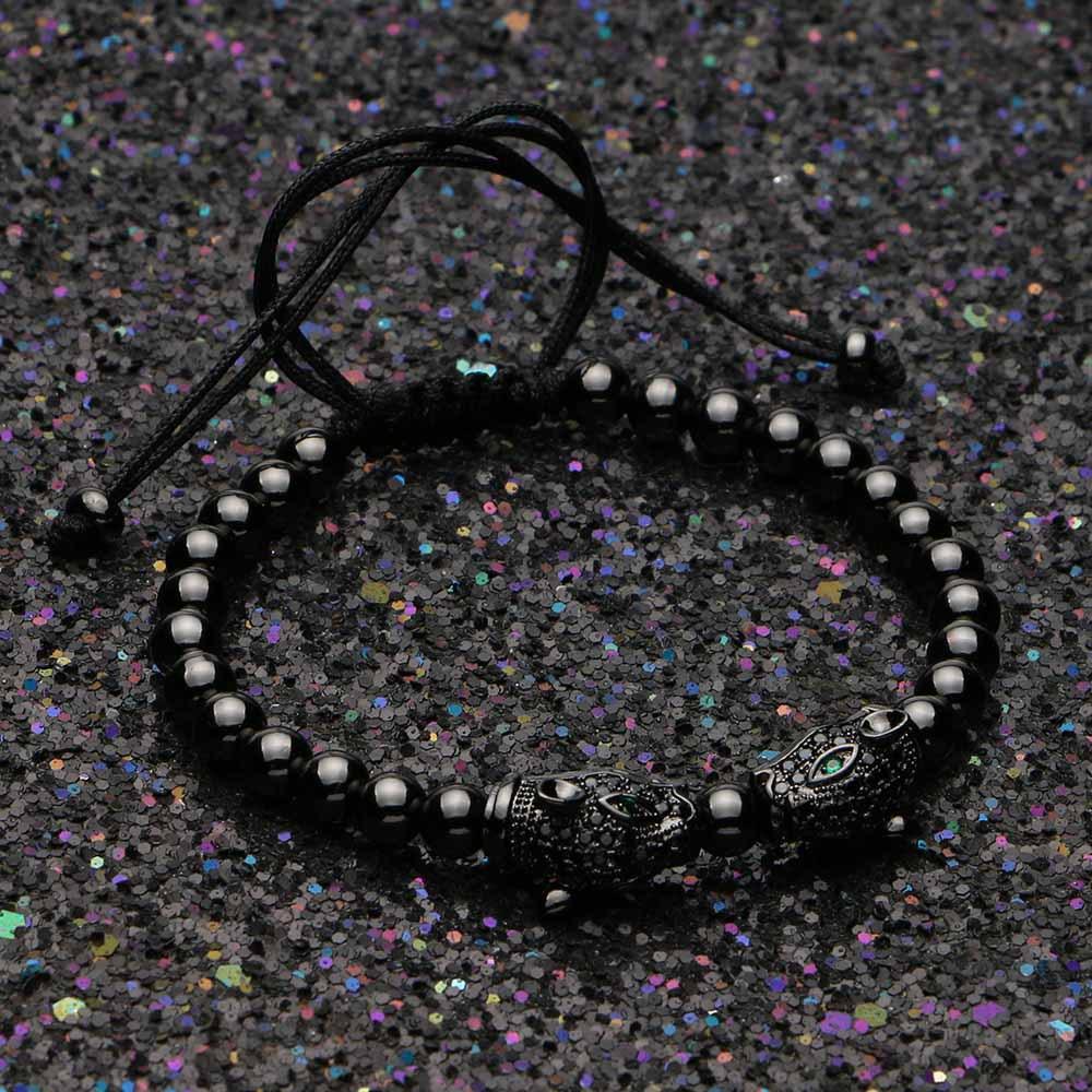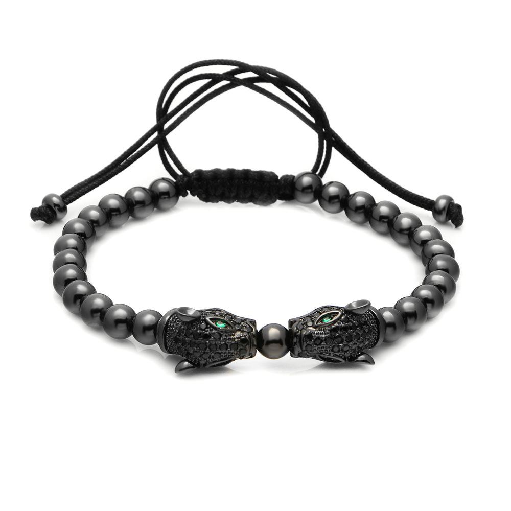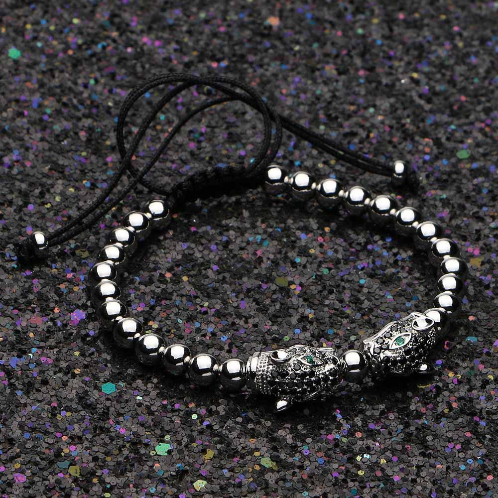 Europa y Estados Unidos nuevo 6 mm cuentas de cobre de cuatro colores micro incrustaciones de circonita cabeza de leopardo pulsera de personalidad pulsera de moda tendencia al por mayor