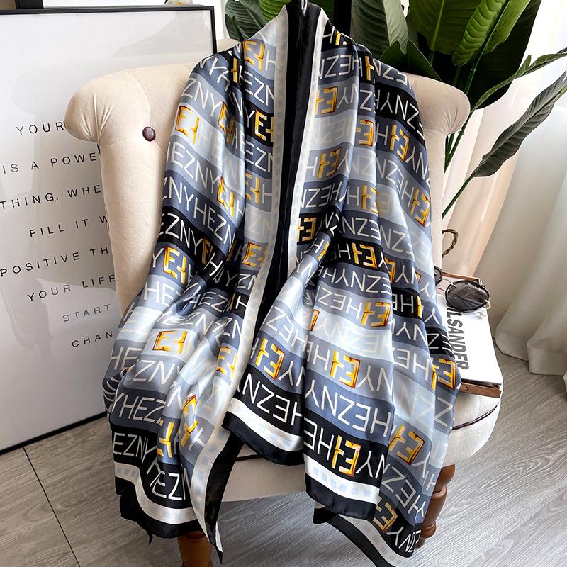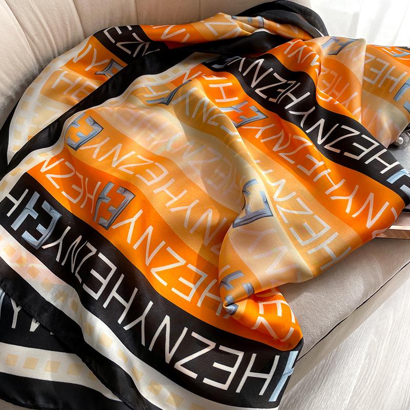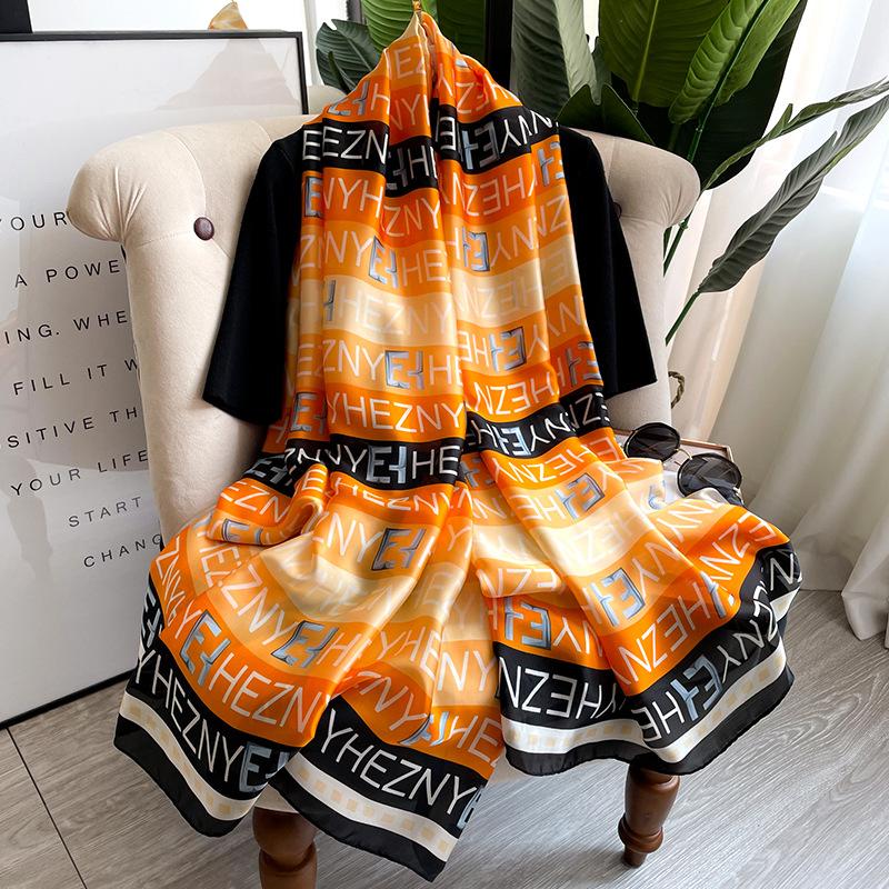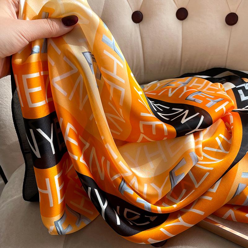 Bufanda de seda con letras de nuevo estilo 2022, bufanda multifuncional para mujer, chal de protección solar de verano, ropa exterior, bufanda para el cuello de otoño e invierno.