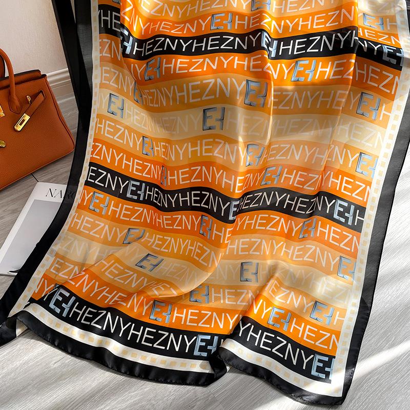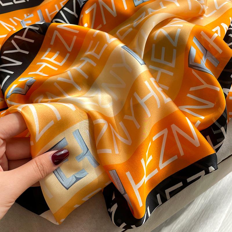 Bufanda de seda estilo occidental de nueva moda para primavera y otoño de 2022, bufanda de estilo coreano de doble uso para mujer, bufanda de seda con letras
