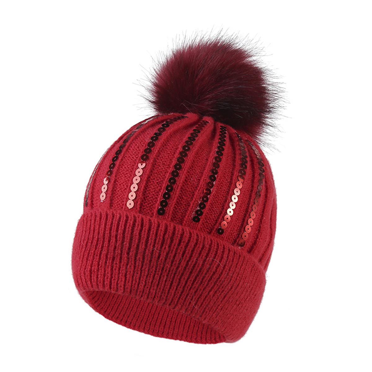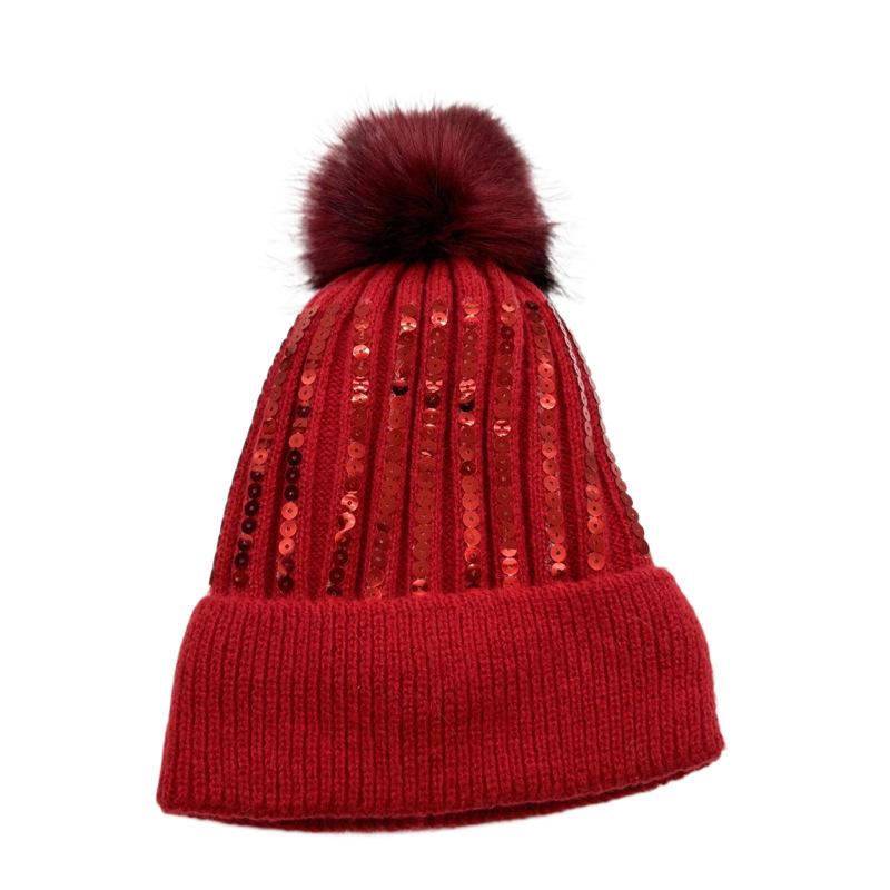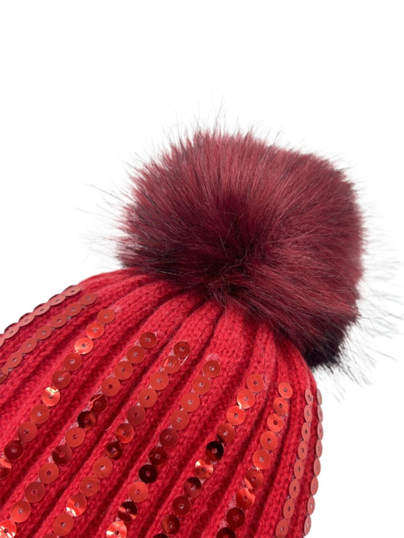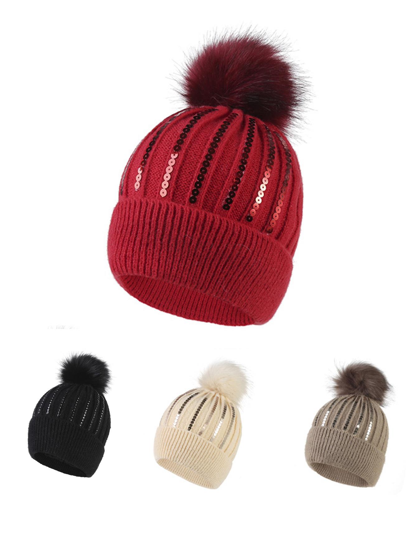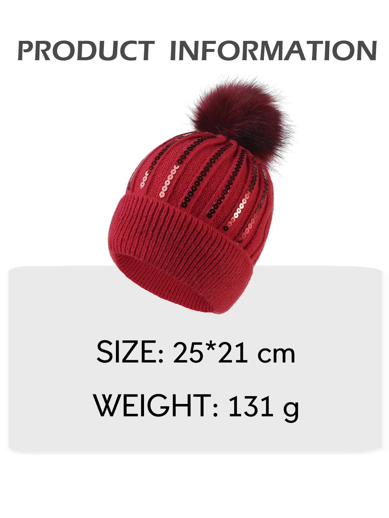 Wool ball sequined knitted hat Red, Wool ball sequined knitted hat light gray, Wool ball sequined knitted hat ...
