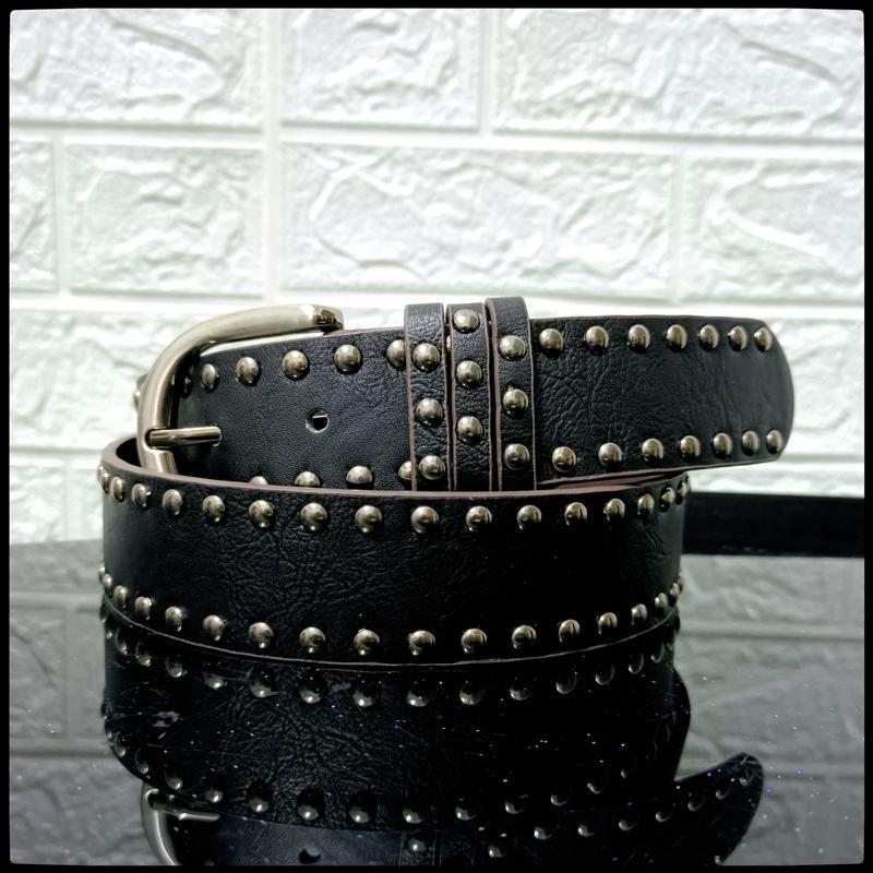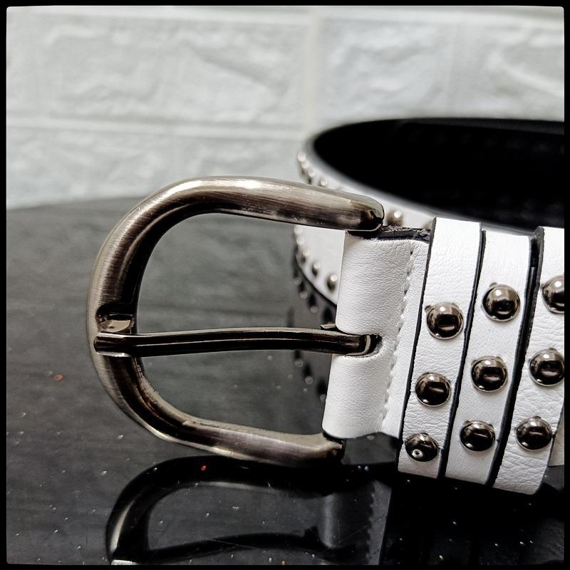 Cinturón para mujer, blanco, para jeans, con hebilla suave que combina con todo, moderno cinturón con remaches y decoración.