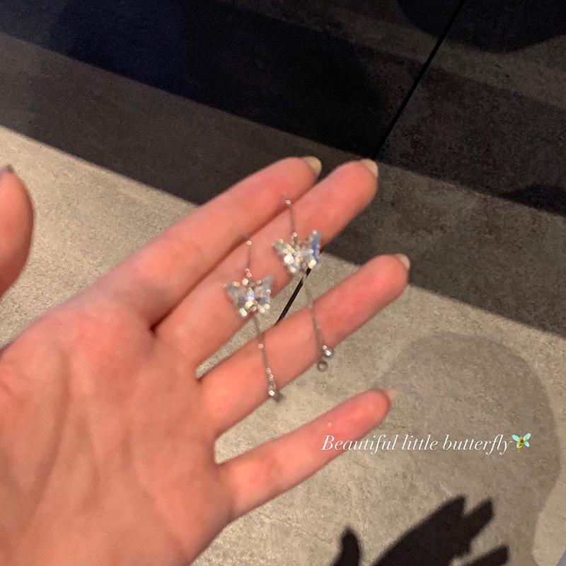 Aretes de borla de mariposa de verano diseño de nicho femenino de alta gama viento frío aretes de tuerca gancho para la oreja clip para la oreja aretes sin oreja