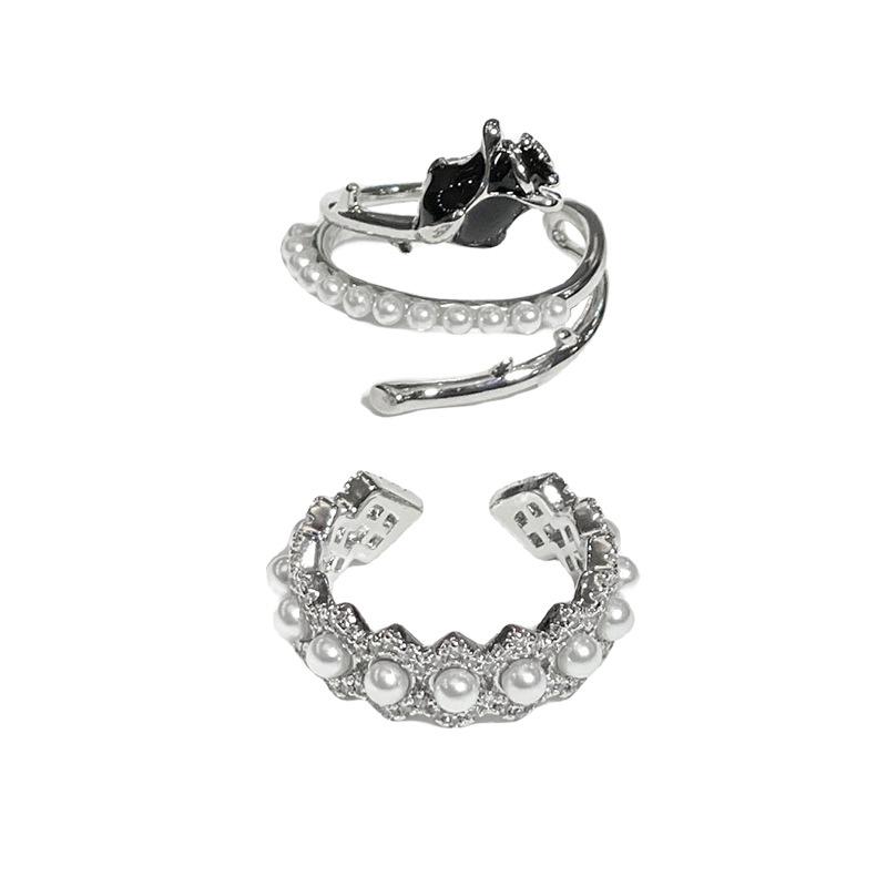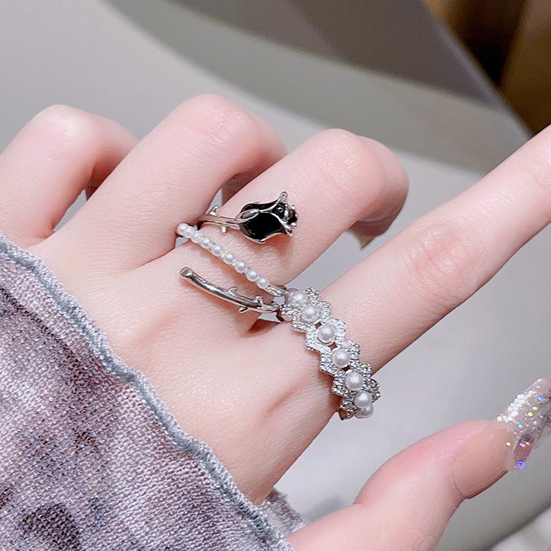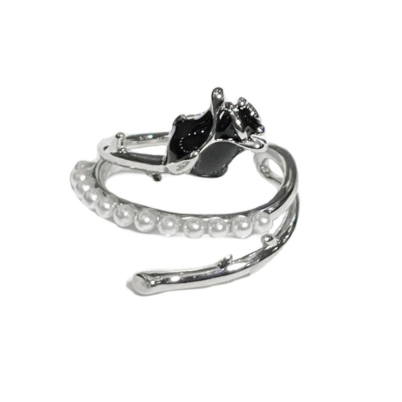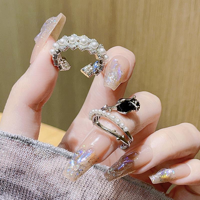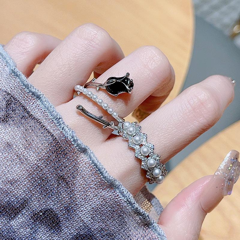 Libro Rojo popular rosa negra anillo abierto diseño nicho personalidad diamante completo circón moda anillo simple femenino