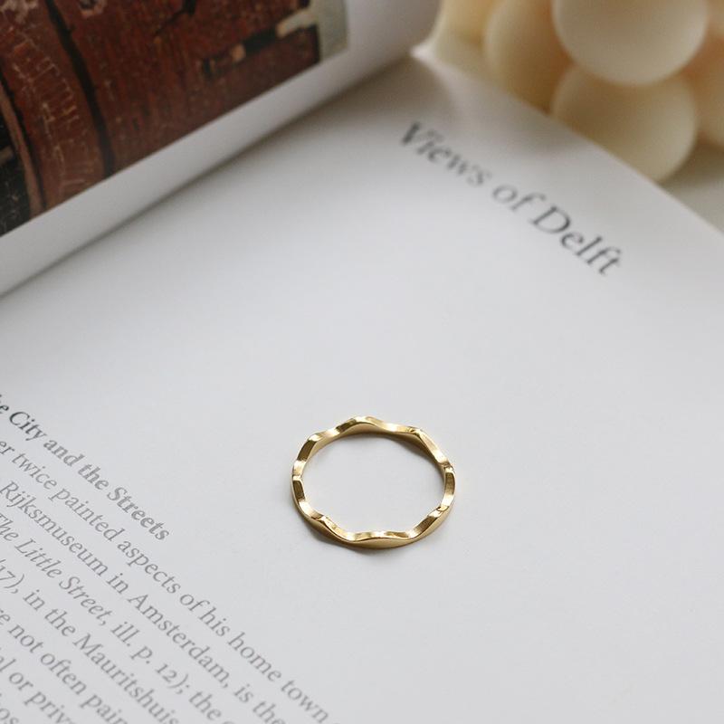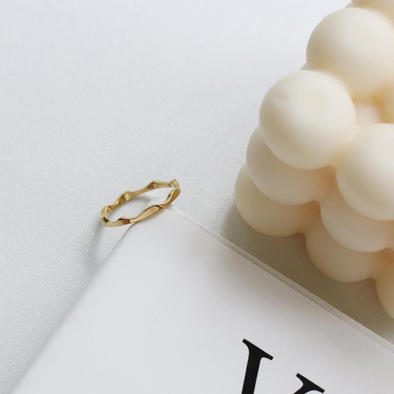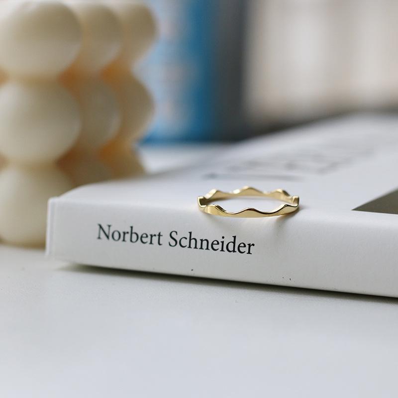JZ043 Anillo Corona Ola Fresca Pequeña Anillo de Cola Pequeño para Mujer Acero Titanio Chapado en Oro de 18K No se Desvanece Fácilmente