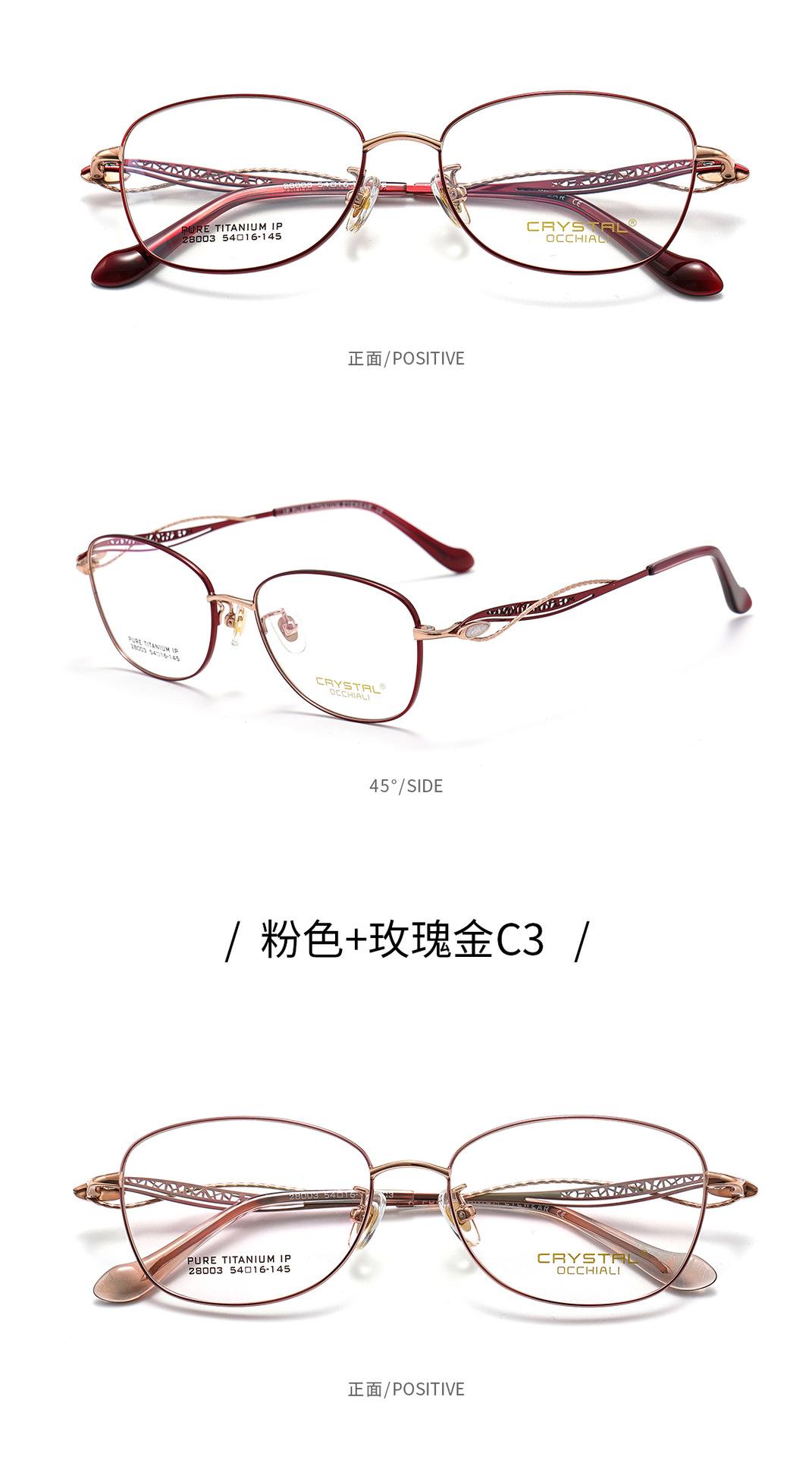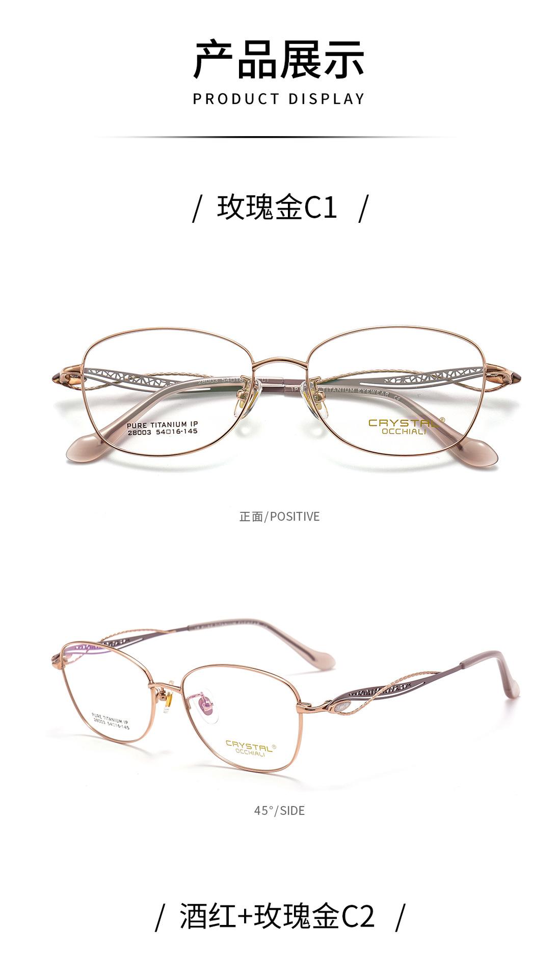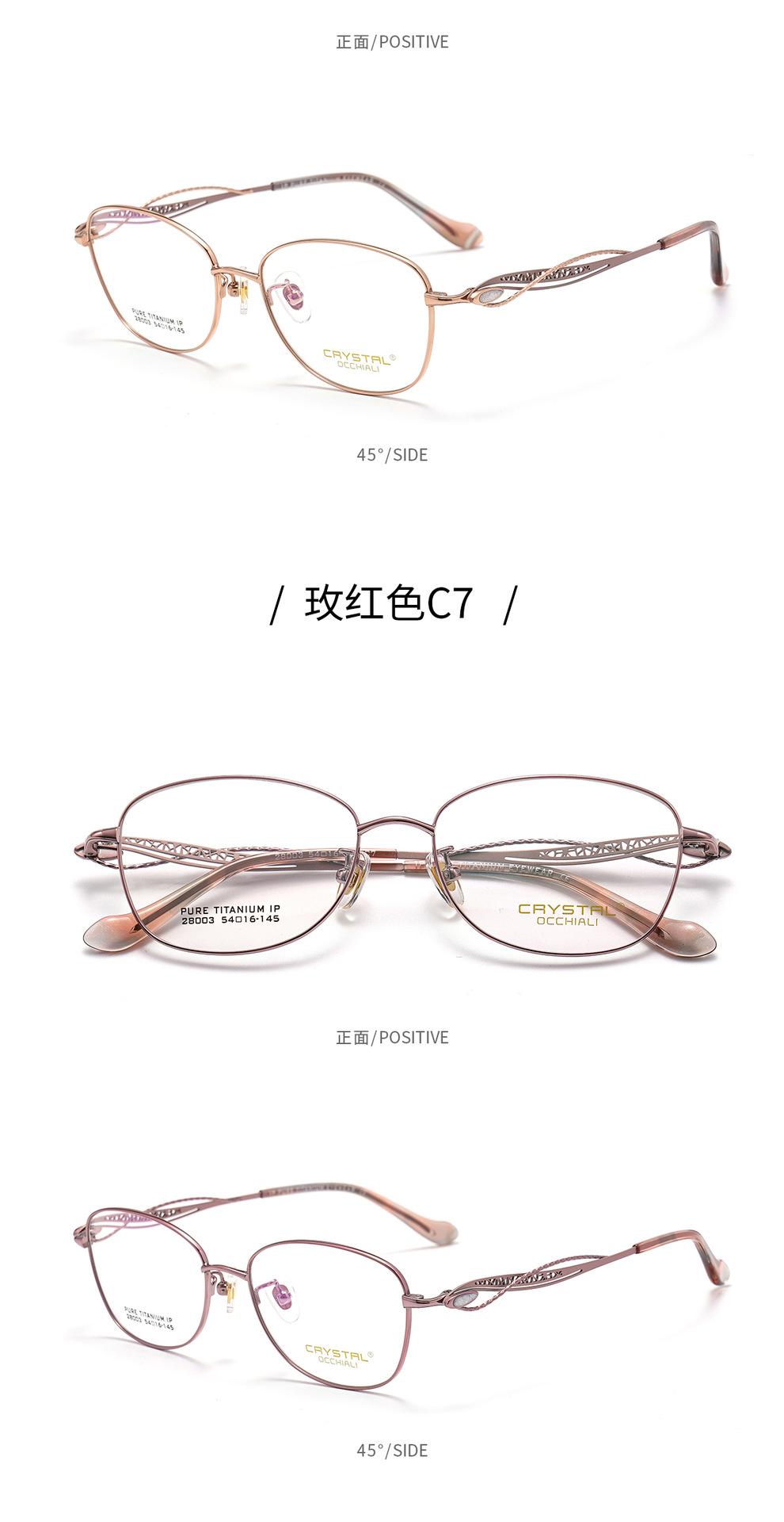 Armazón de gafas de titanio puro cristal para mujer 28003 Fábrica de Danyang Galvanoplastia IP Se puede equipar con gafas de titanio para miopía para dama