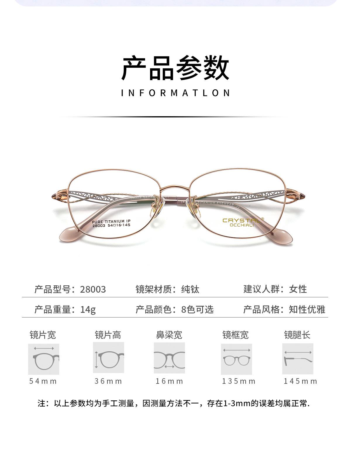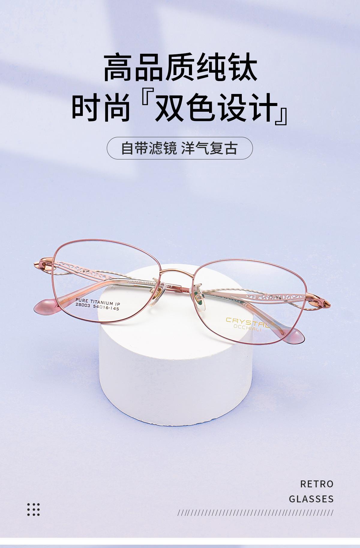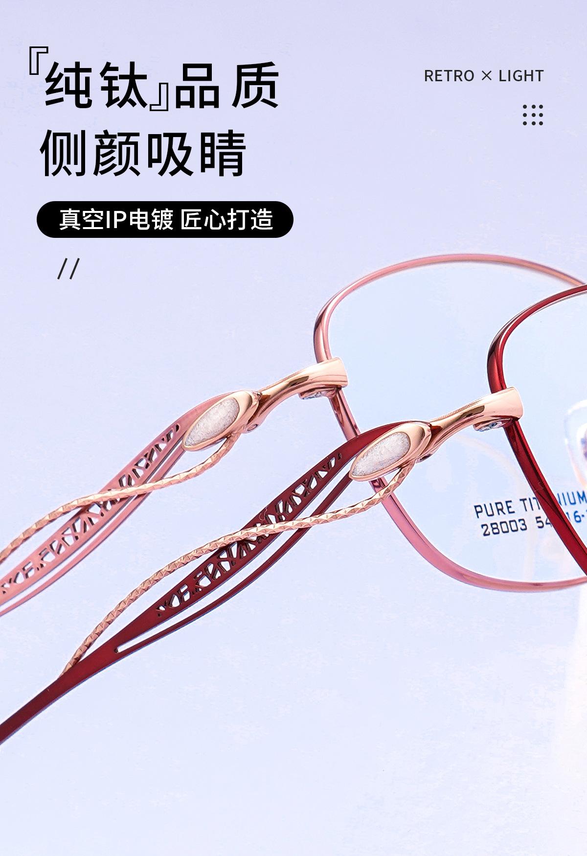 Armazón de gafas de titanio puro cristal para mujer 28003 Fábrica de Danyang Galvanoplastia IP Se puede equipar con gafas de titanio para miopía para dama