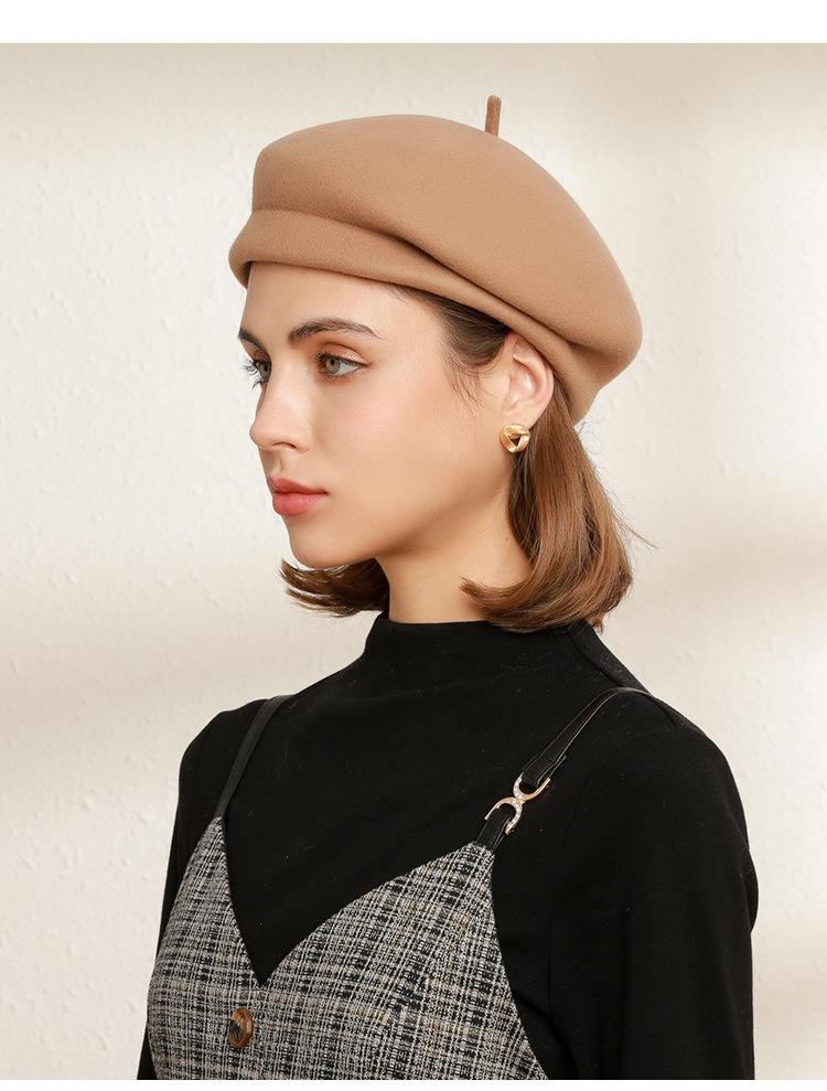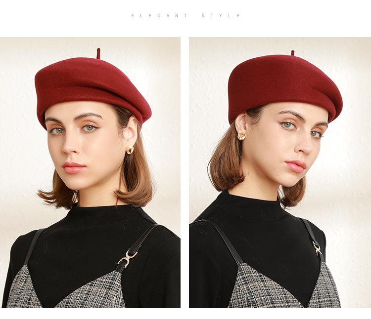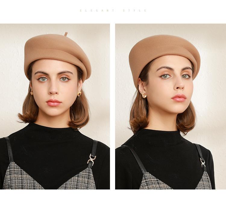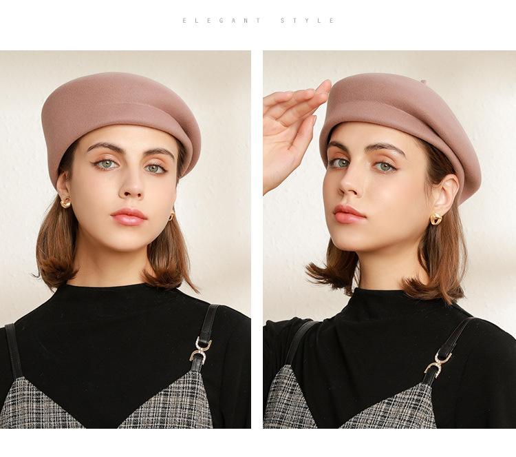 Sombrero de mujer de otoño e invierno, sombrero de fieltro de lana pura, boina elegante de moda, sombrero de estilo británico, sombrero de copa combinable, venta al por mayor