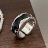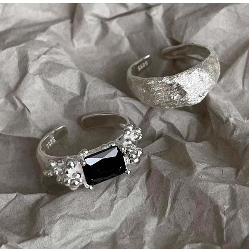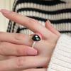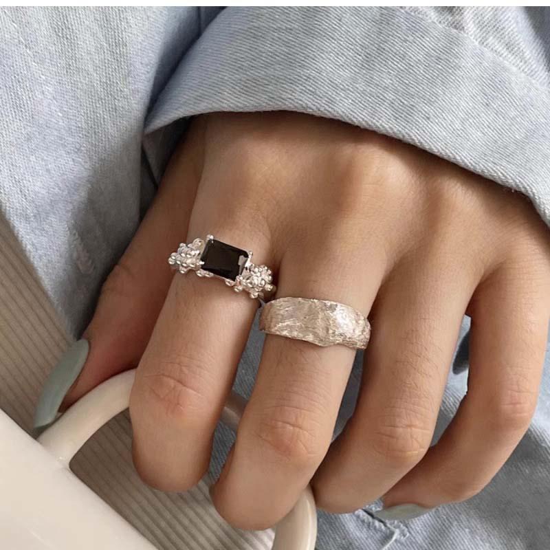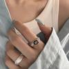 Anillo Estilo Francés de Zirconia Negra para Mujer Diseño Nicho Moderno Simple Versátil Personalidad Abierto Ajustable Anillo para Dedo