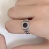 Black zircon silver ring, Round Roman Numeral Ring, Black Love Light Luxury Silver Ring, Black zircon love twi...