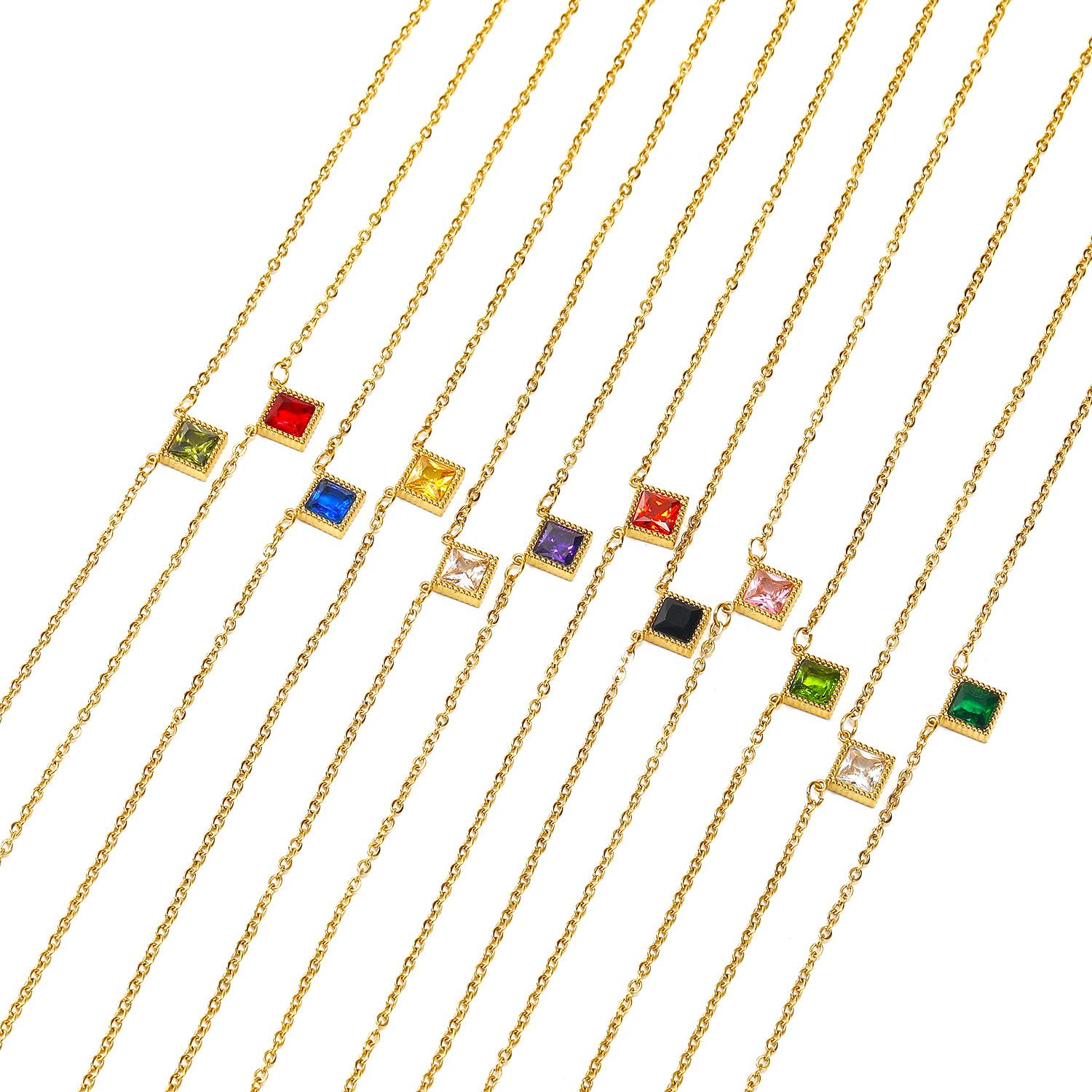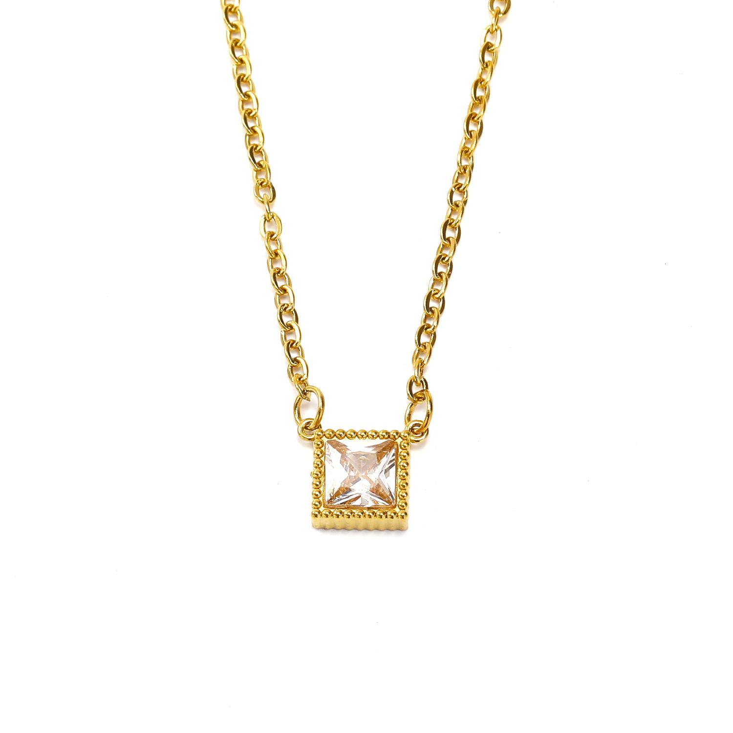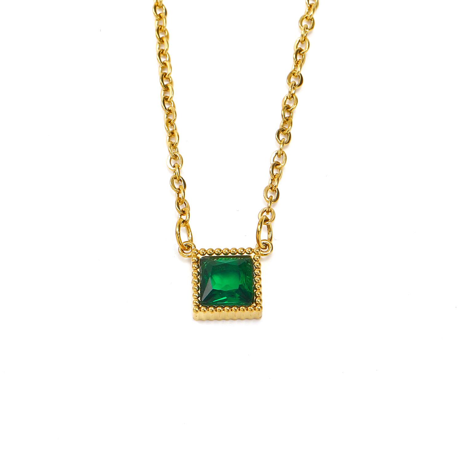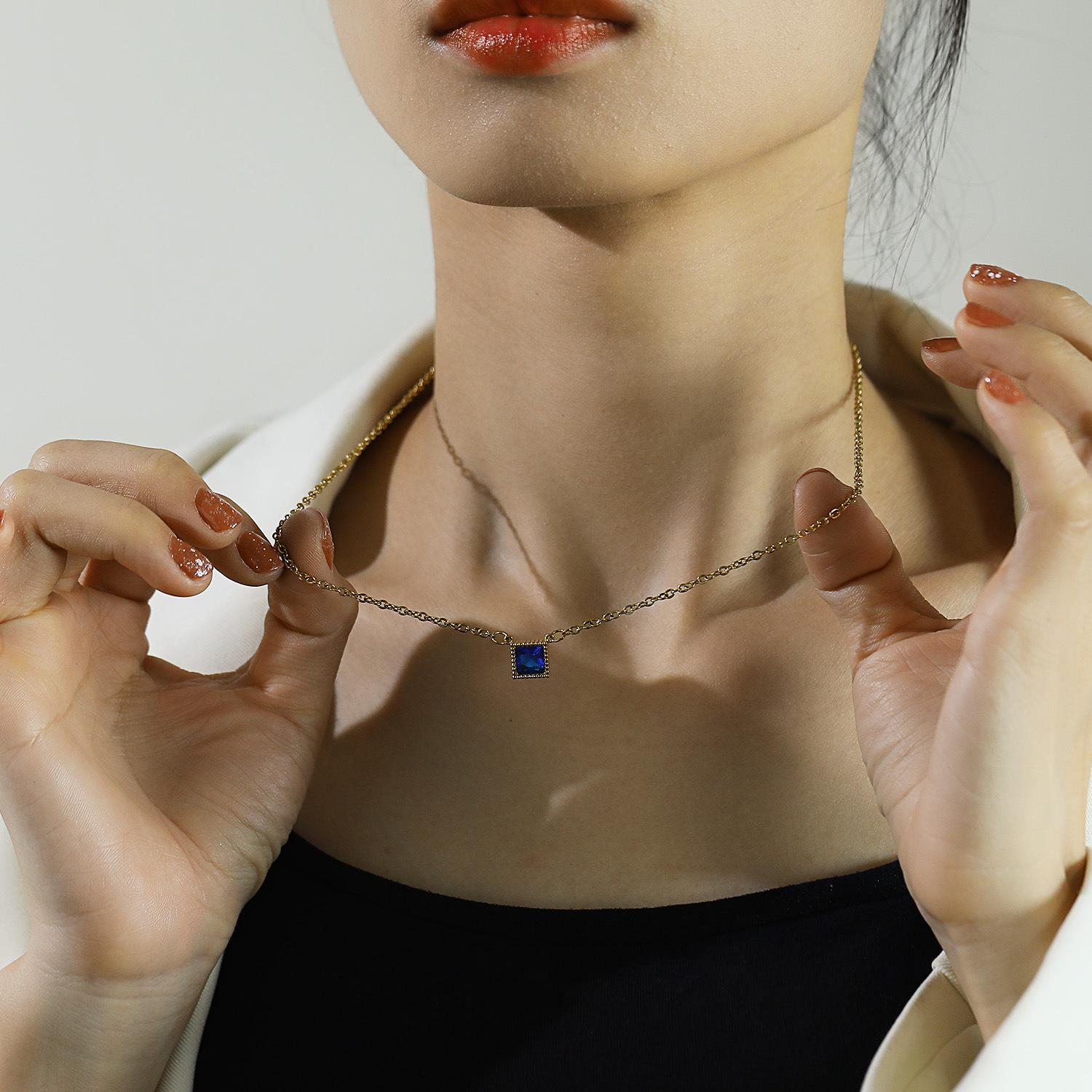 Collar de circonitas cuadradas geométricas de lujo de alta calidad, estilo europeo y americano, con colgante de acero de titanio y oro de 18 quilates para mujer.