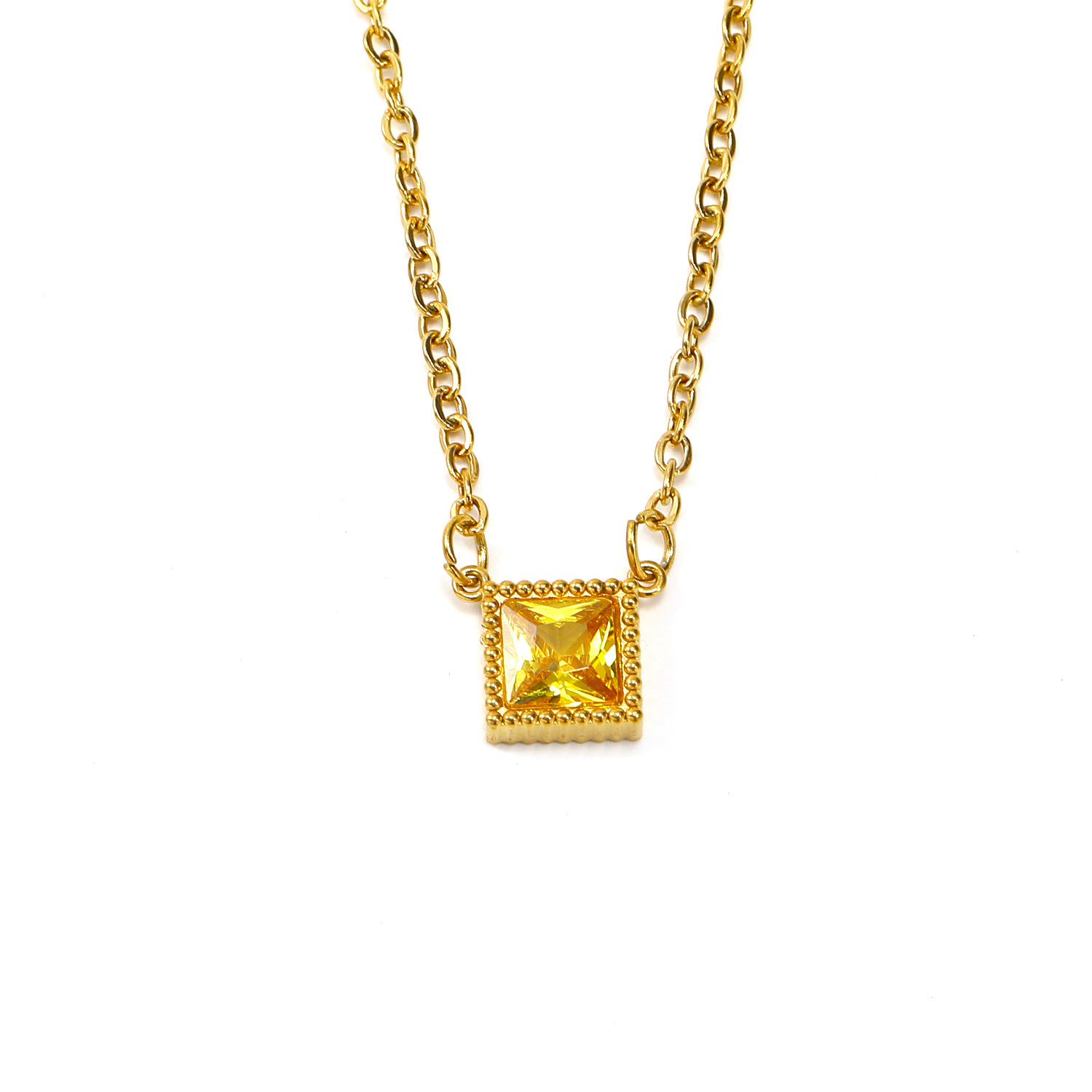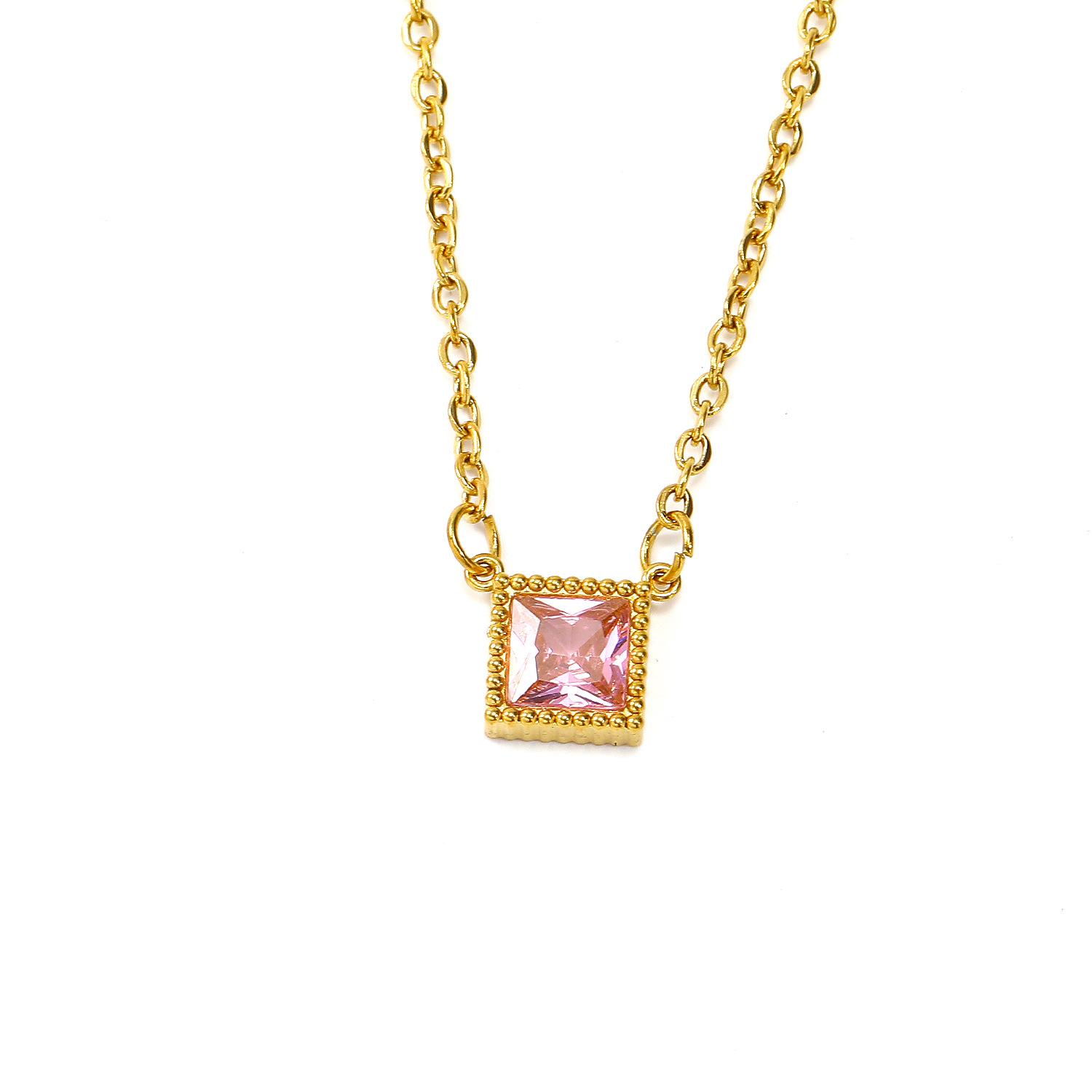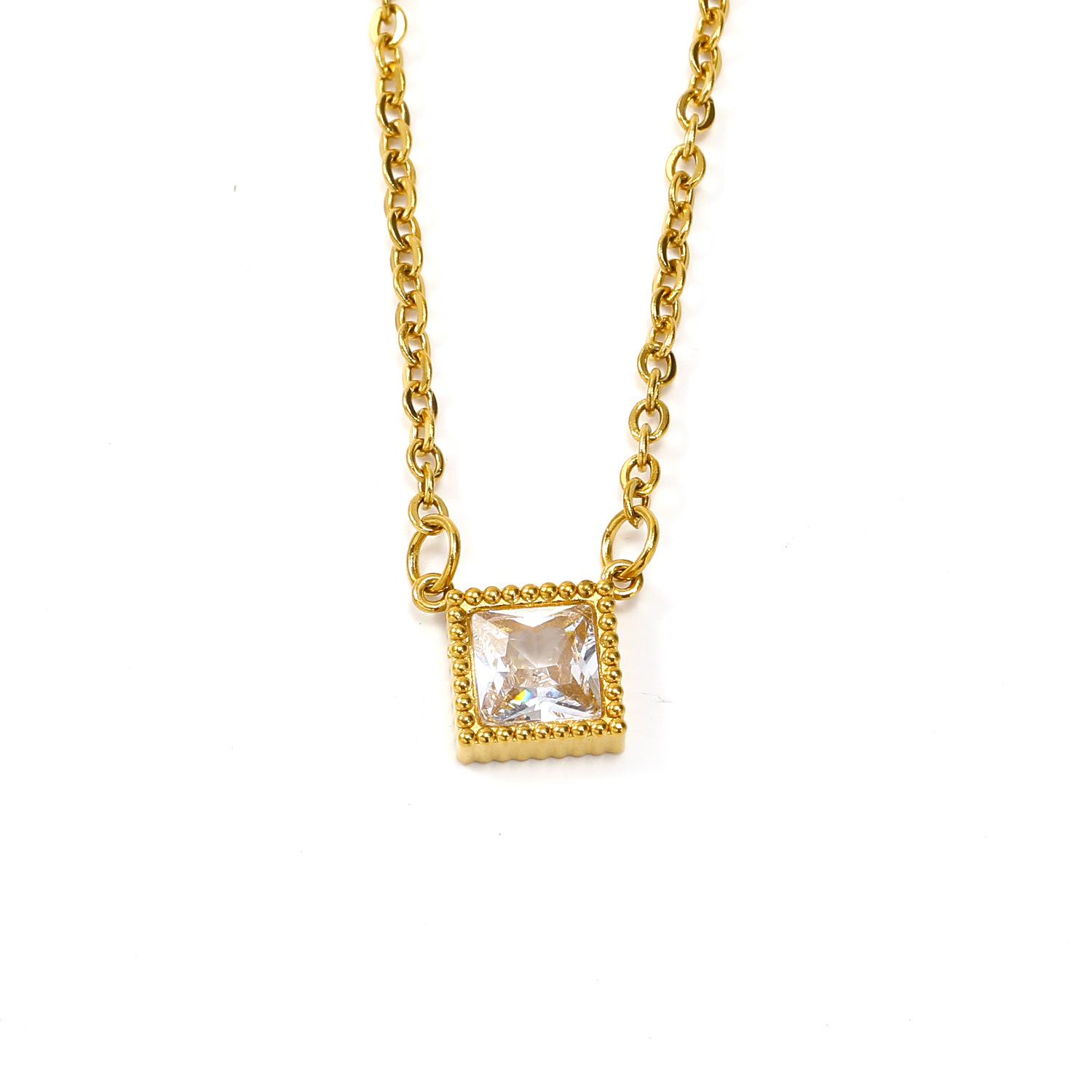 Collar de circonitas cuadradas geométricas de lujo de alta calidad, estilo europeo y americano, con colgante de acero de titanio y oro de 18 quilates para mujer.