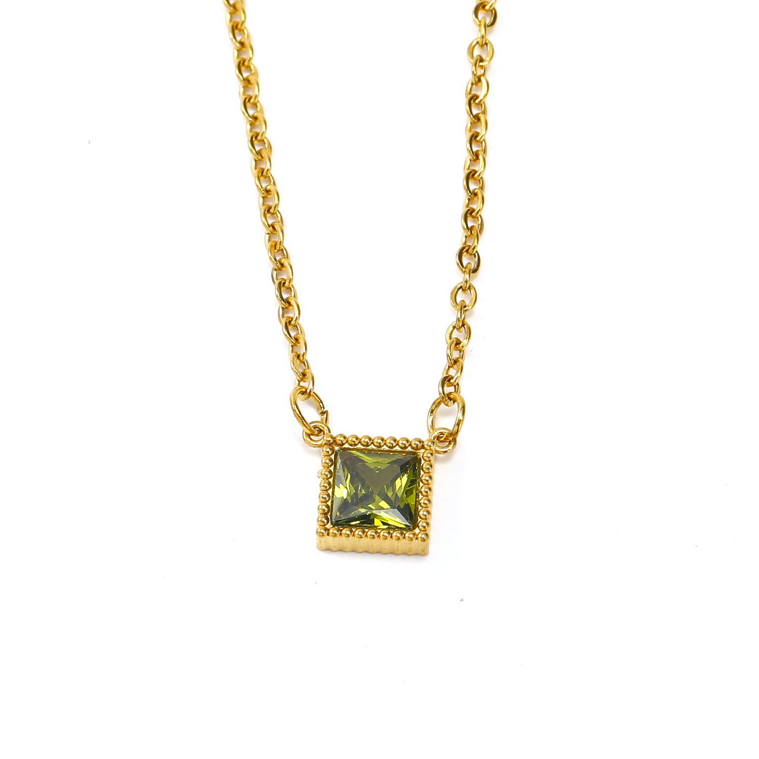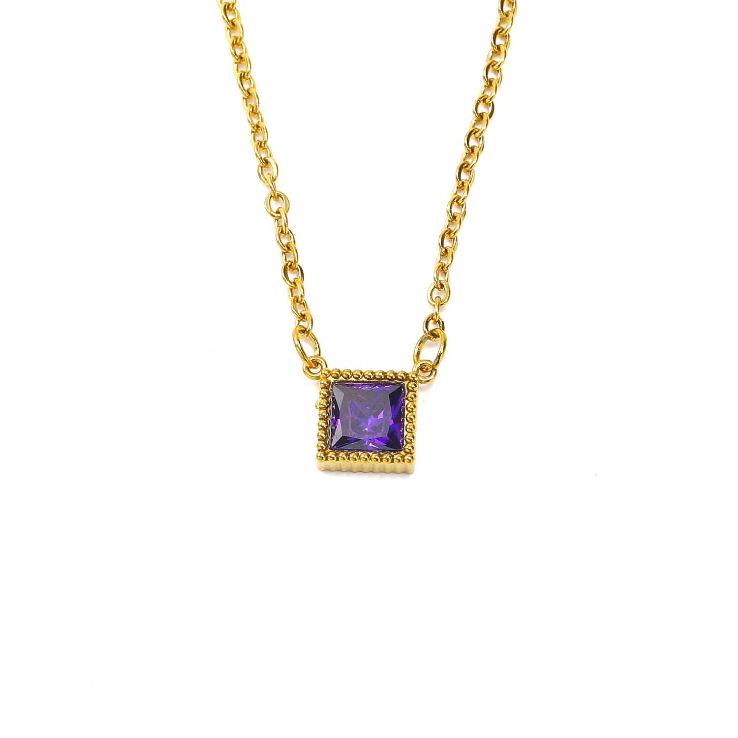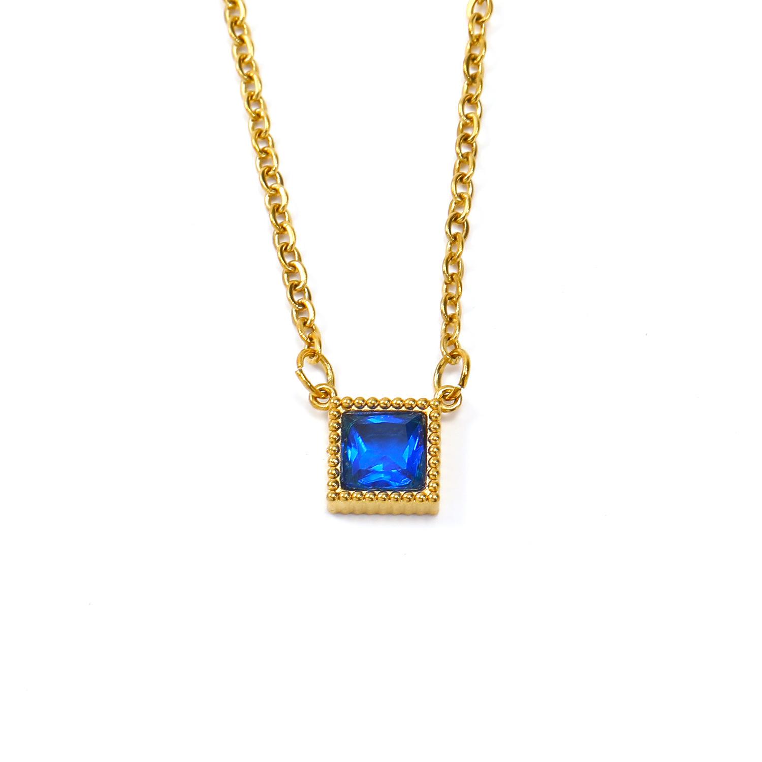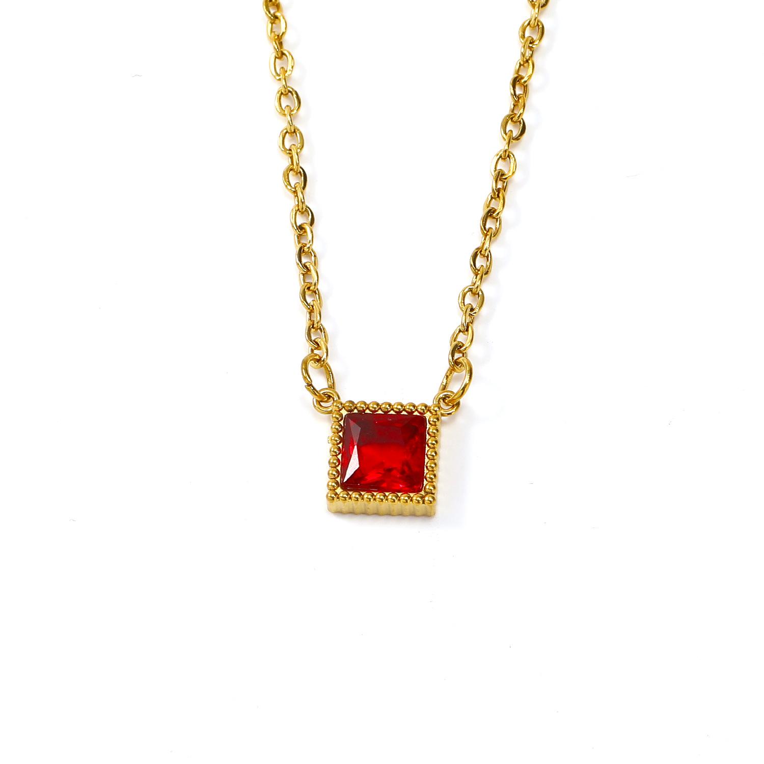 Collar de circonitas cuadradas geométricas de lujo de alta calidad, estilo europeo y americano, con colgante de acero de titanio y oro de 18 quilates para mujer.