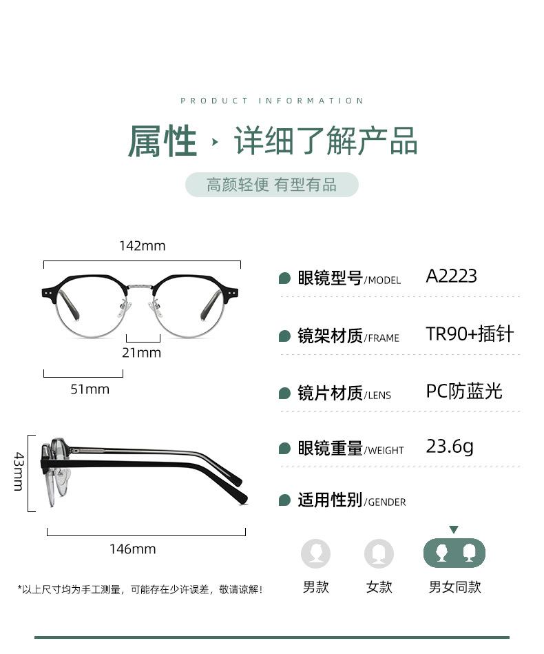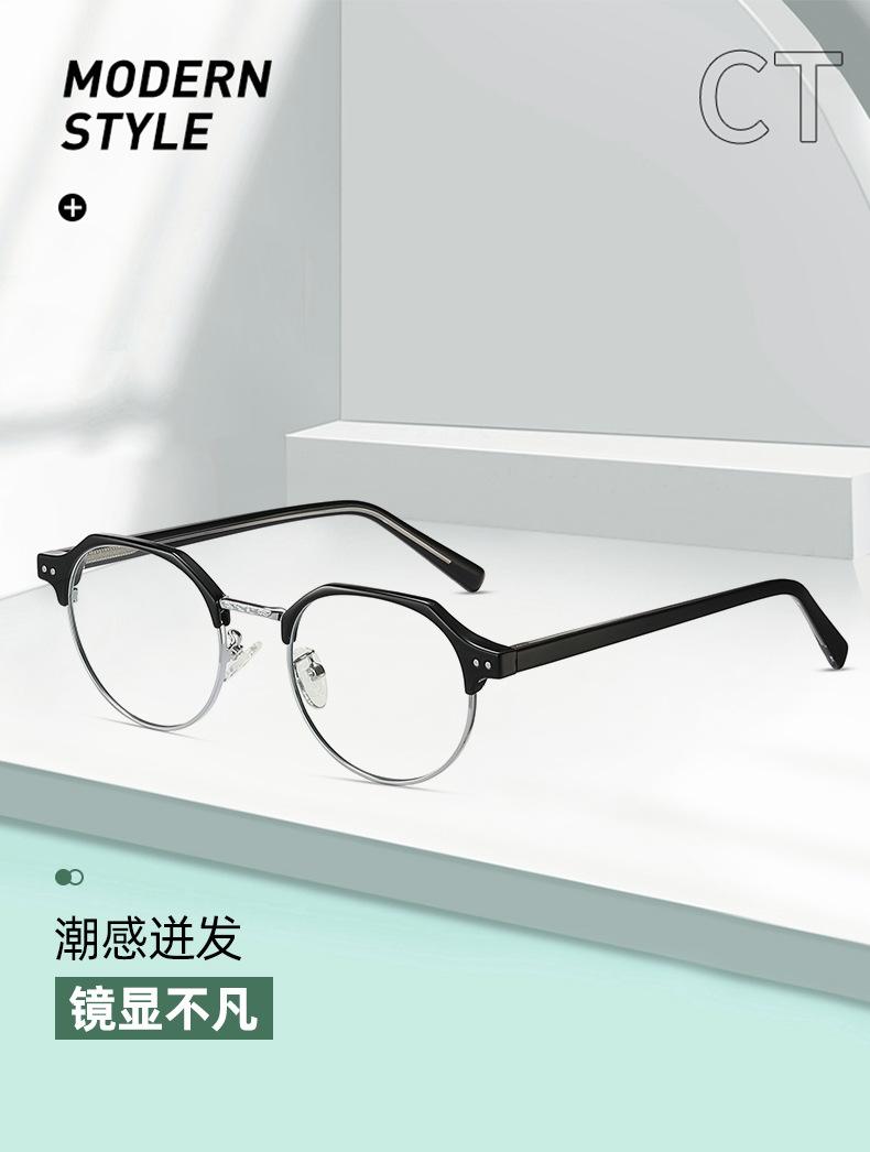 Nuevos lentes redondos coreanos TR90 anti-luz azul montura de cejas montura de gafas propiónicas gafas de pin miopía gafas al por mayor