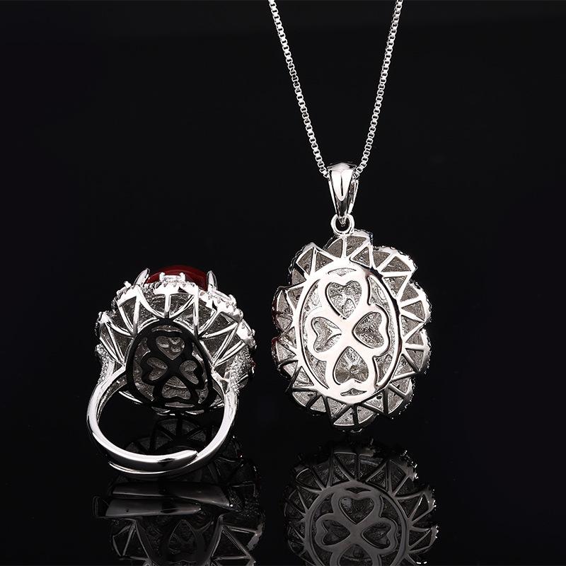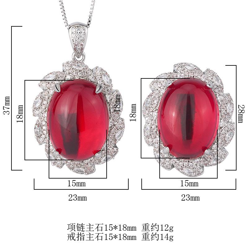 Chalcedony pendant with chain, Chalcedony ring, Red corundum pendant with chain, Red corundum ring, Blue spind...