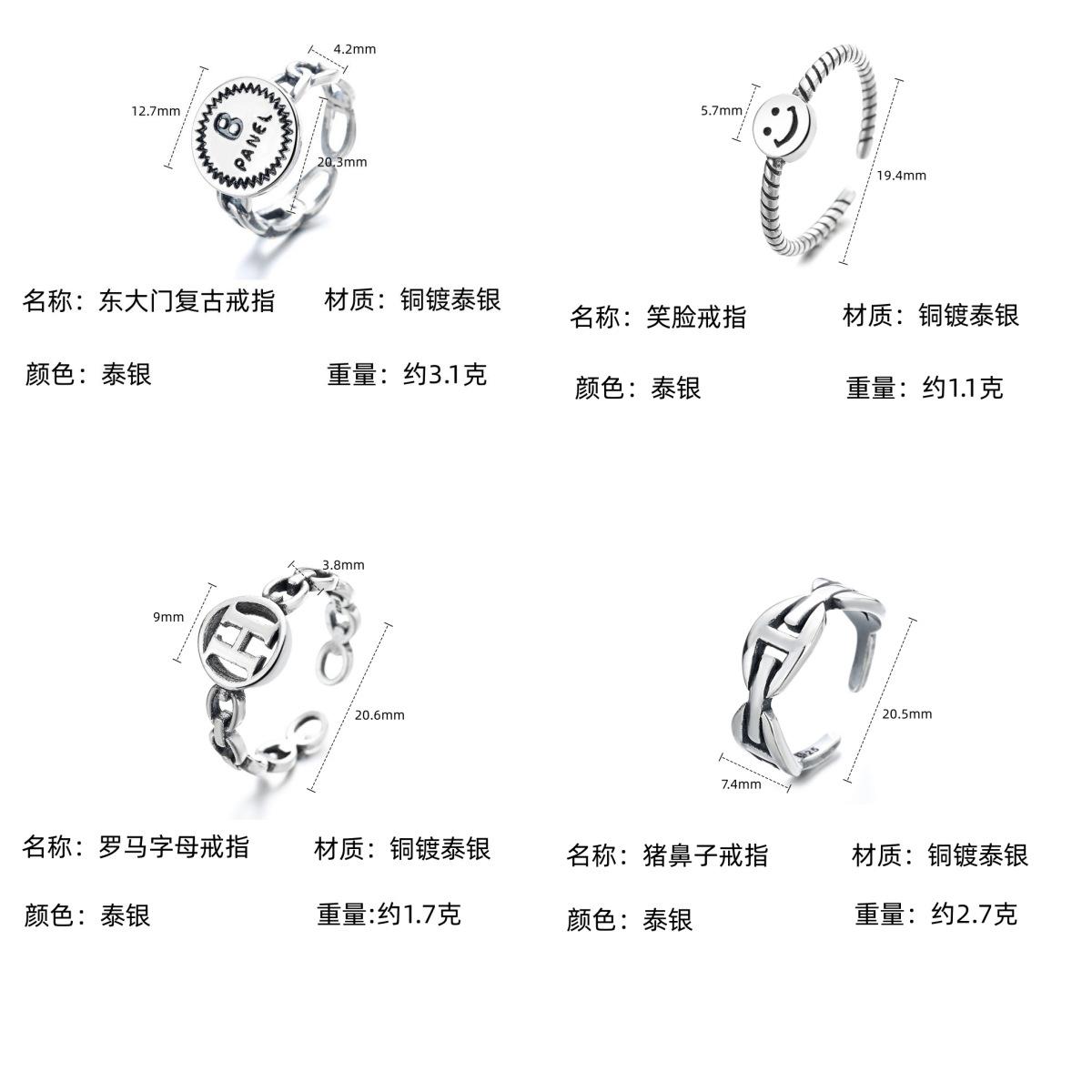 Moda europea y americana Corea del Sur Dongdaemun retro anillo de alta gama para mujer artesanía antigua anillo de dedo suelto apertura ajustable