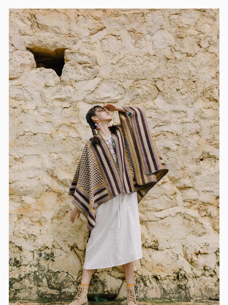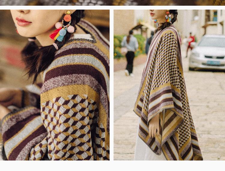 Chal para mujer, abrigo estilo capa de otoño e invierno con bufanda grande gruesa de estilo étnico, aire acondicionado, foto de viaje