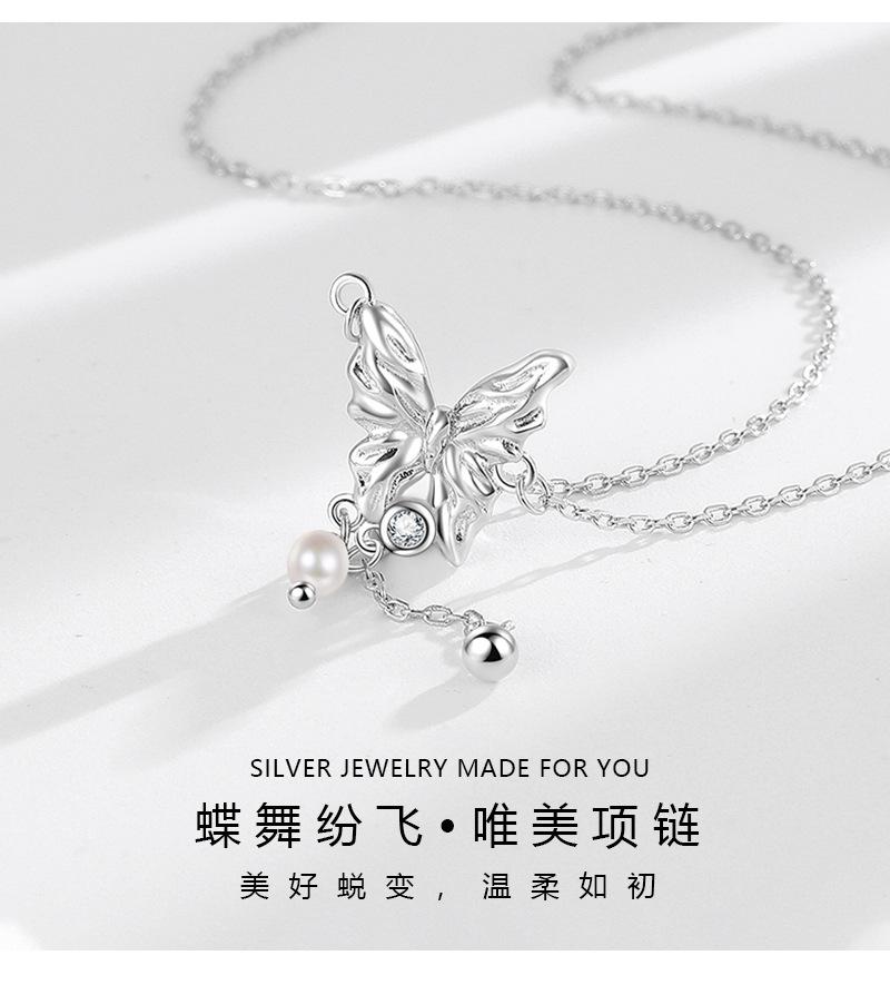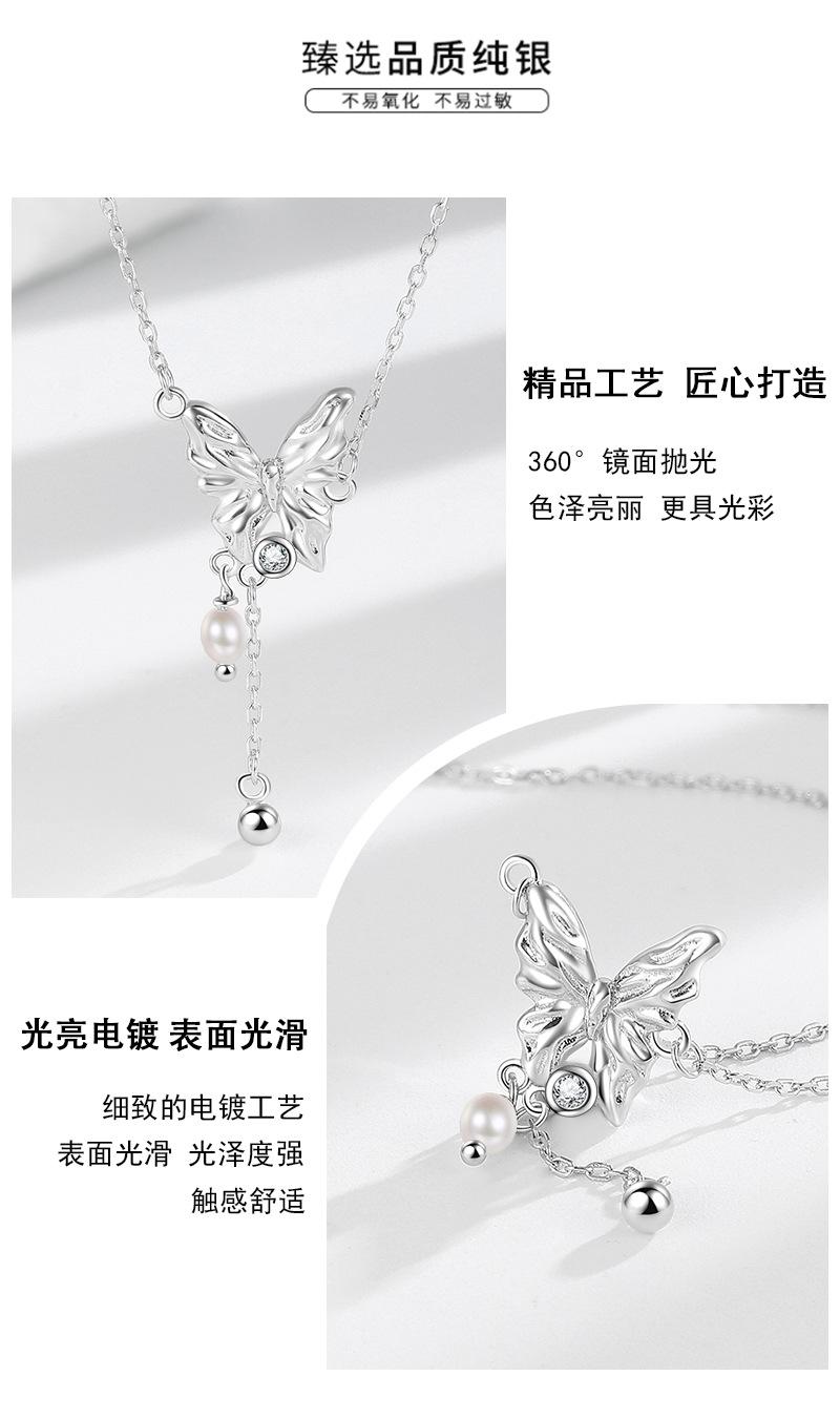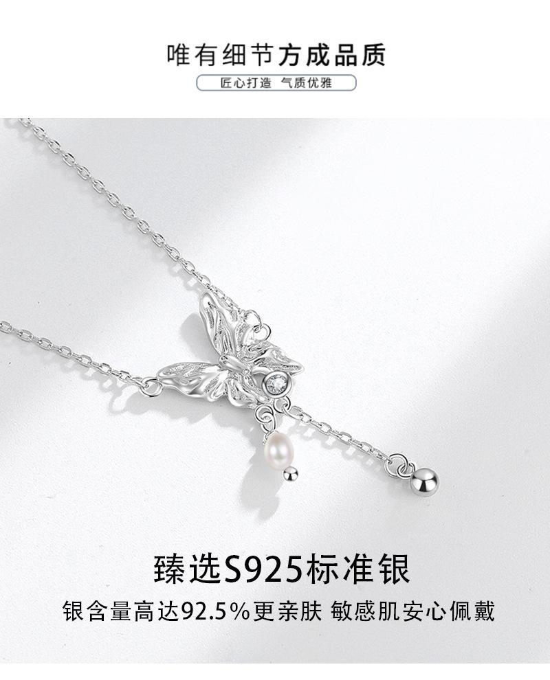 Collar de lazo de diseño original de textura para niñas verano plata esterlina S925 nicho alta gama collar de perlas naturales