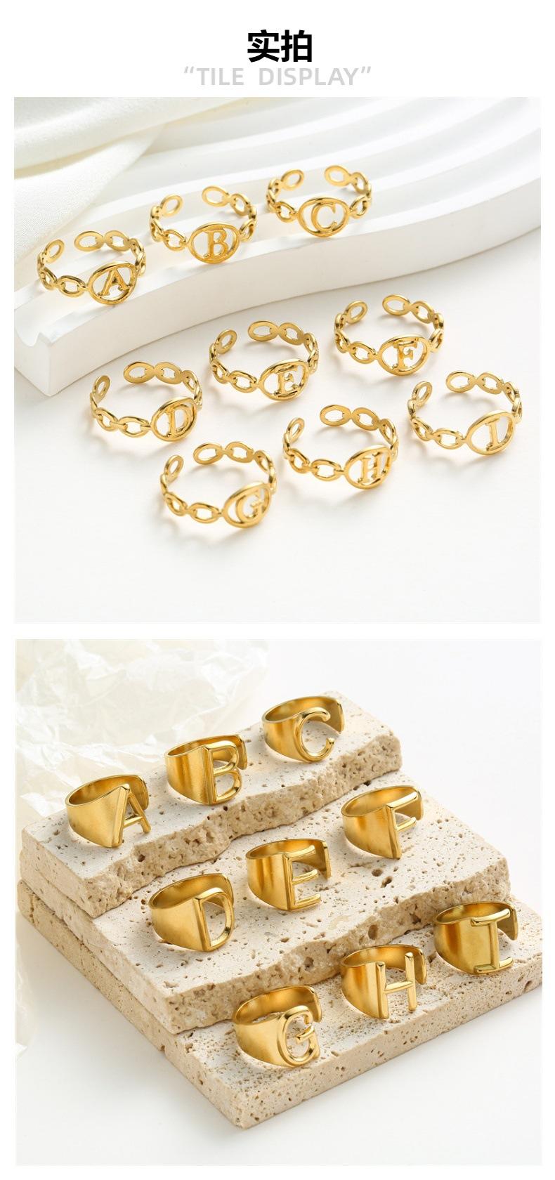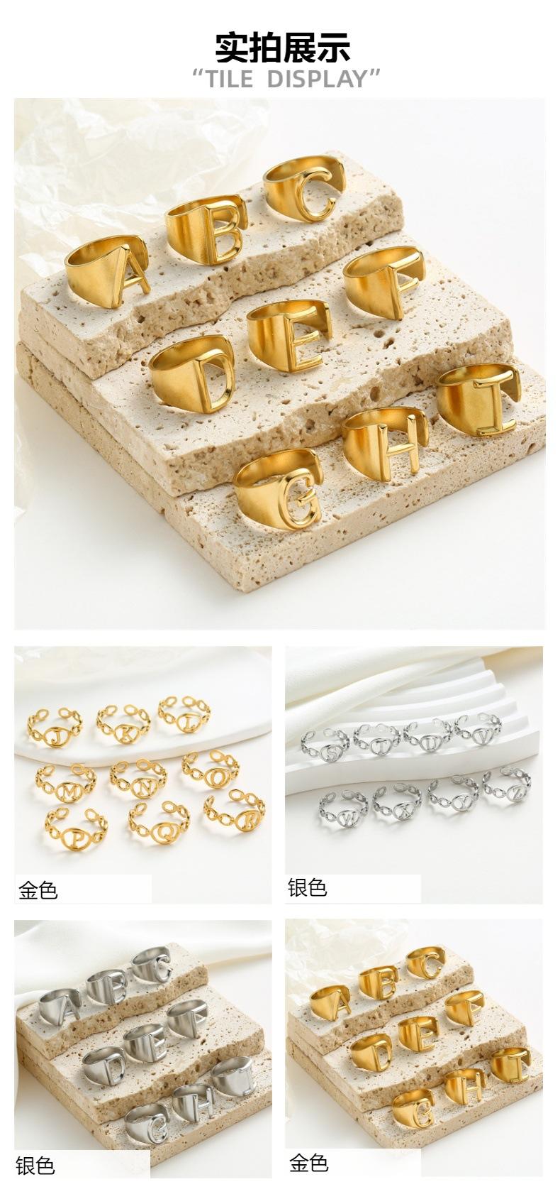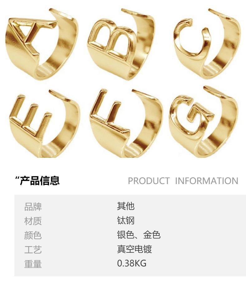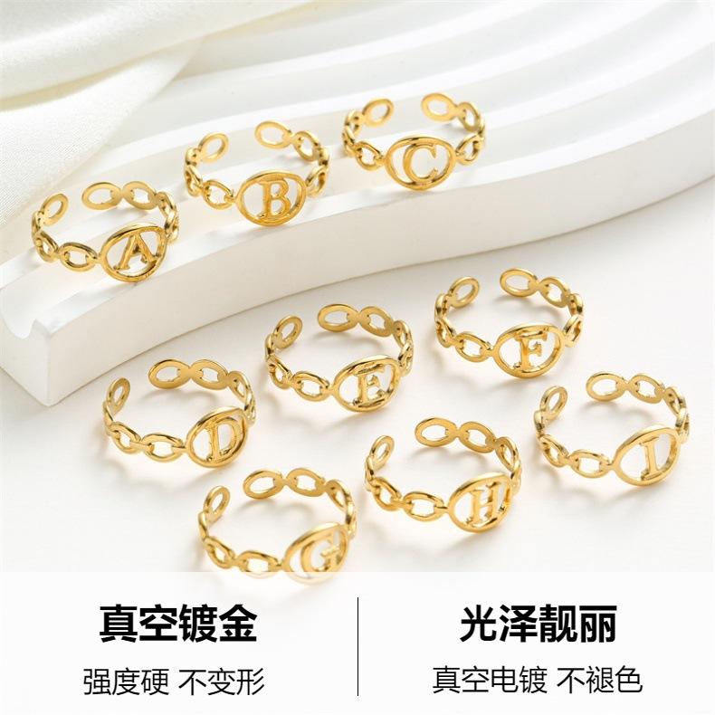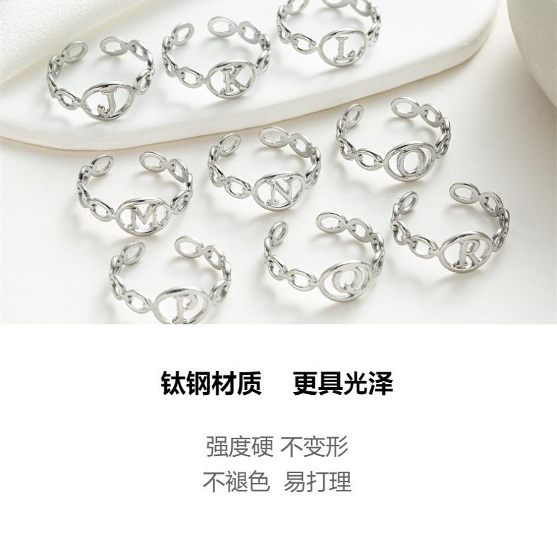Anillo de acero de titanio con 26 letras de moda transfronteriza, anillo abierto de acero inoxidable con personalidad para mujer, estilo viento frío y combinable.