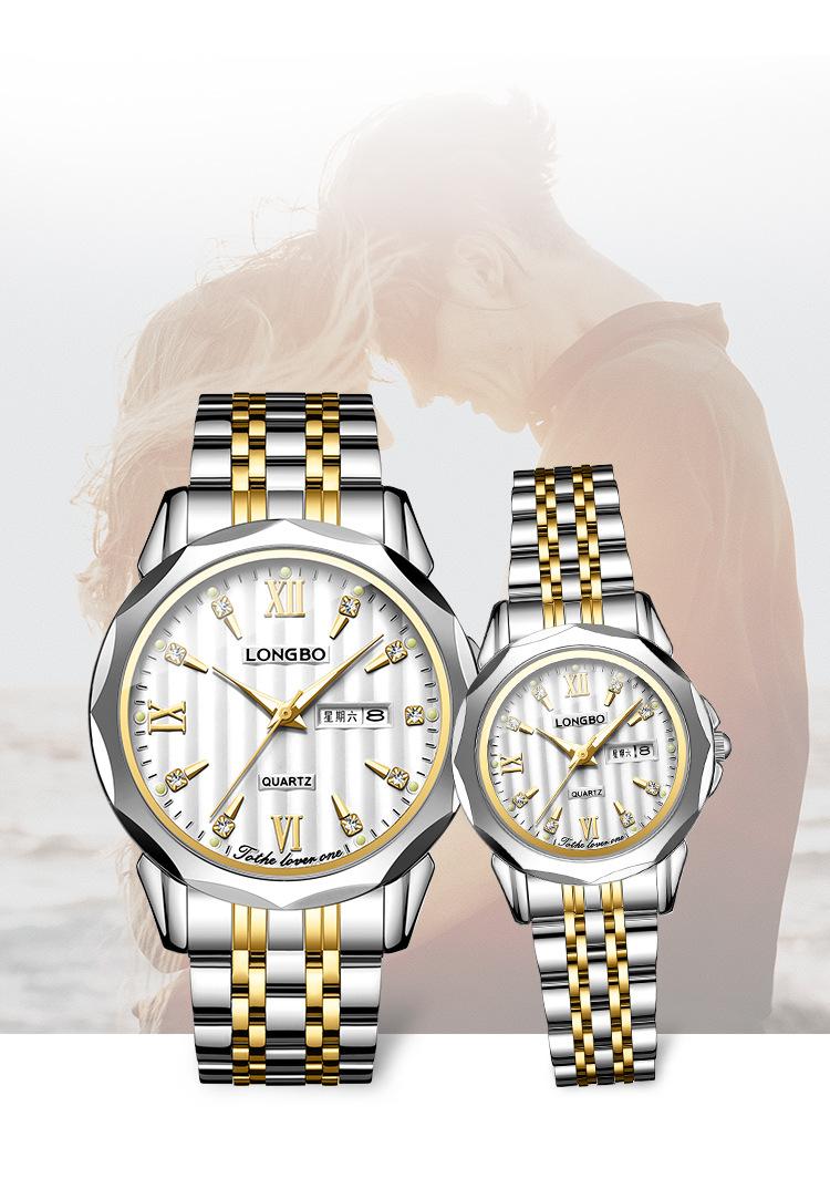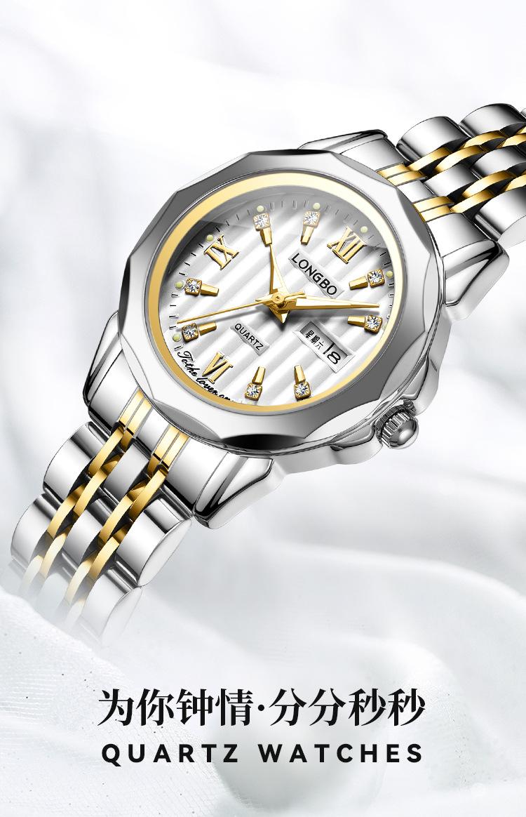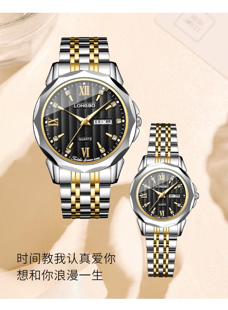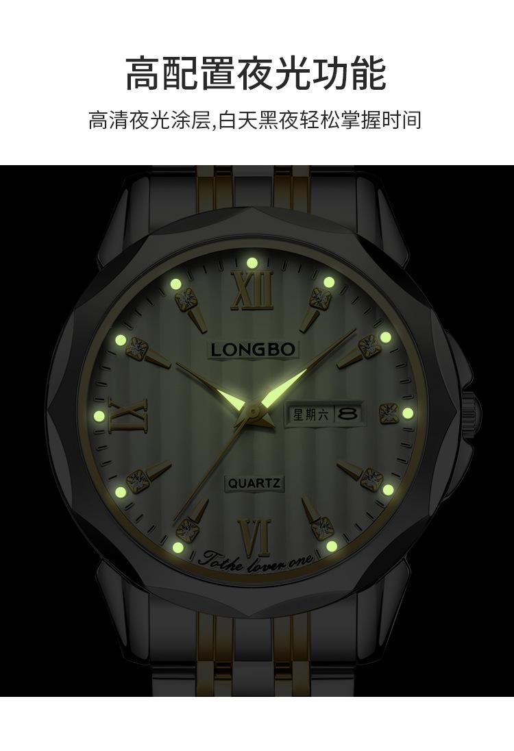 Longbo Reloj de Moda al por Mayor Marca Fábrica Reloj de Negocios para Mujer Fabricante Reloj de Cuarzo Calendario Dual Luminoso Simple Reloj de Pareja
