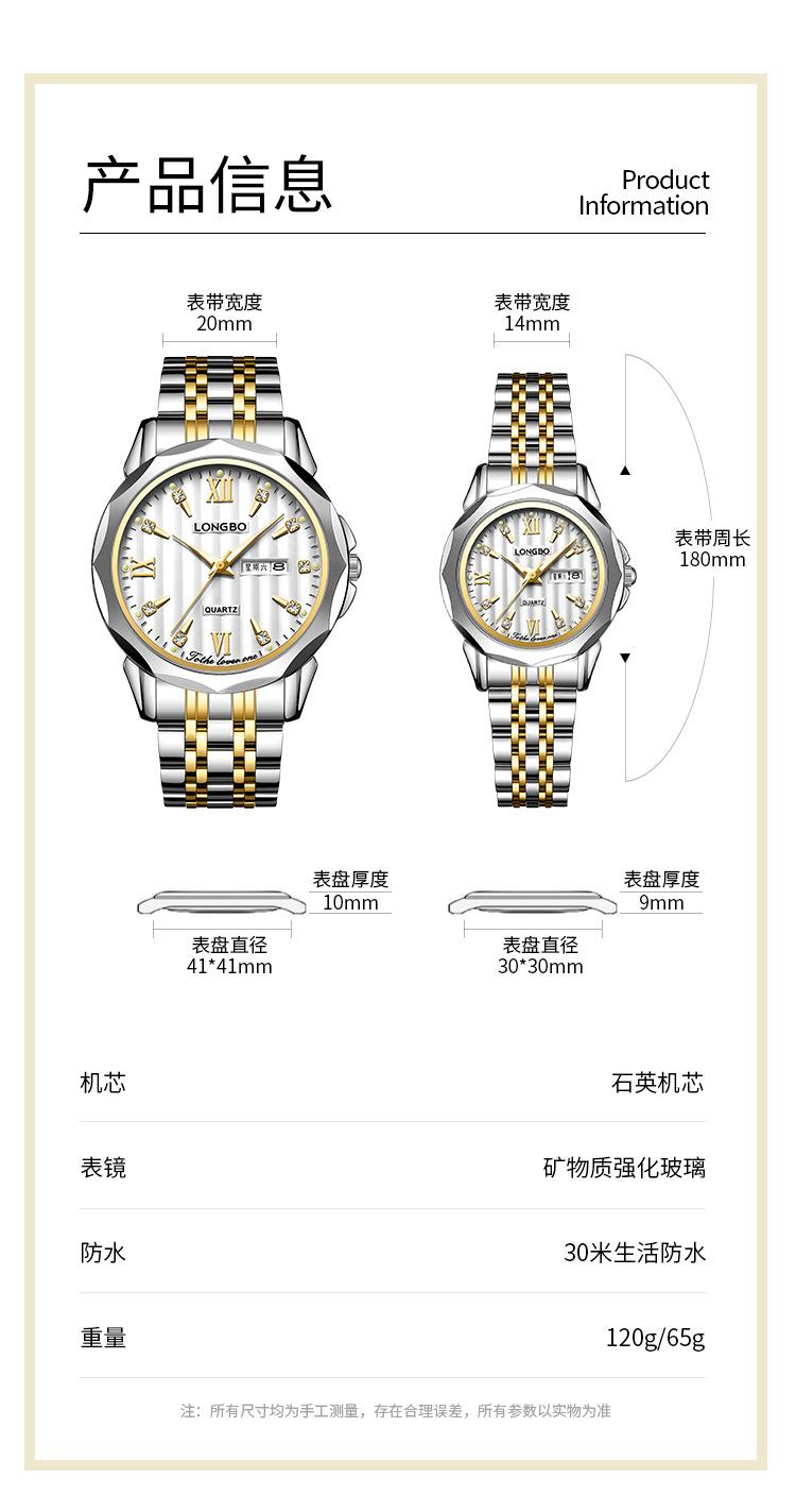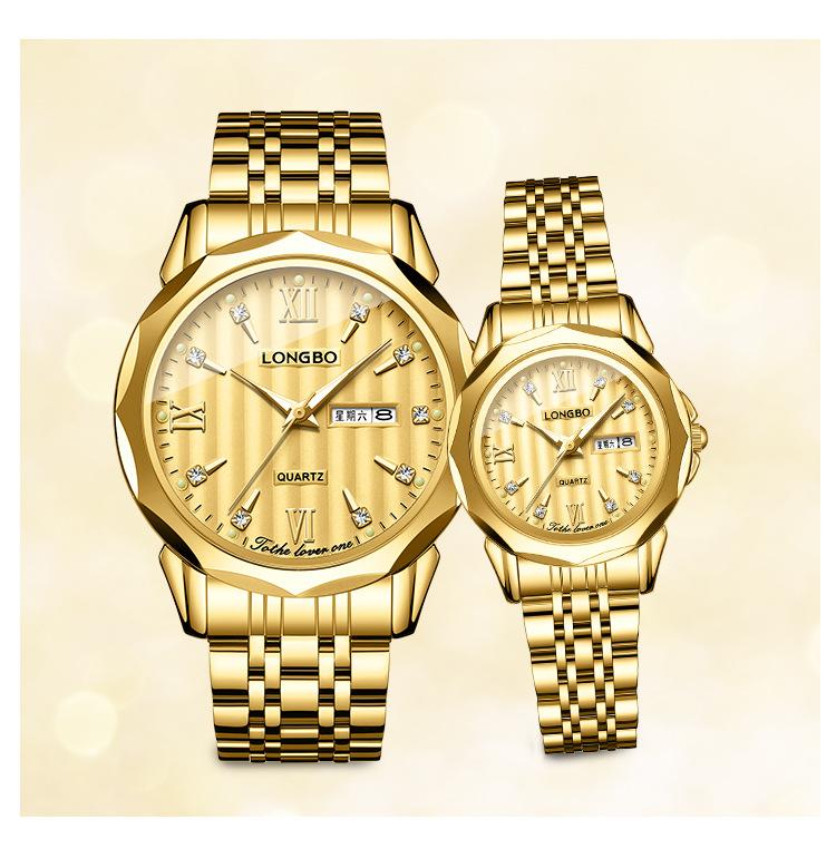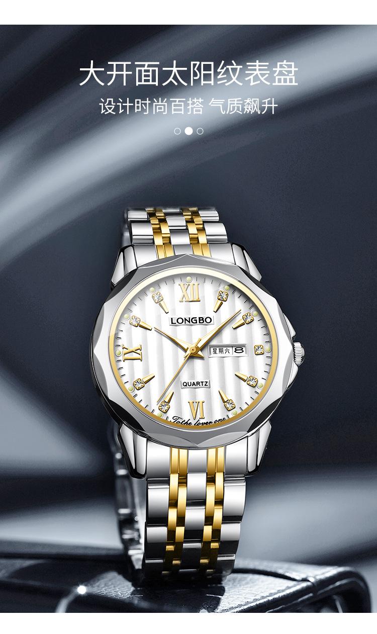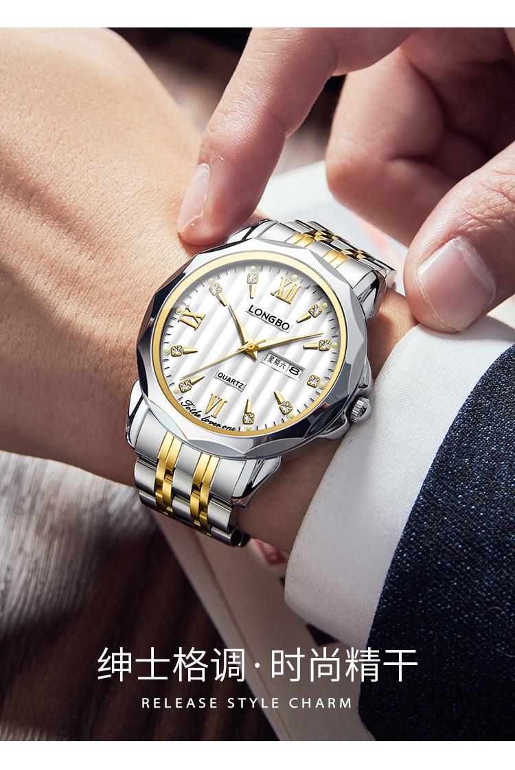 Longbo Reloj de Moda al por Mayor Marca Fábrica Reloj de Negocios para Mujer Fabricante Reloj de Cuarzo Calendario Dual Luminoso Simple Reloj de Pareja