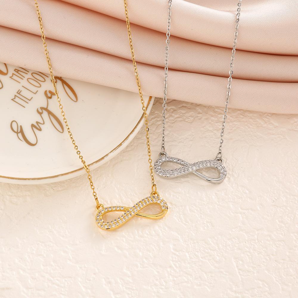 Colgante con símbolo infinito transfronterizo europeo y americano, collar brillante con incrustaciones completas, cadena de clavícula simple de estilo europeo y americano, venta al por mayor de fábrica