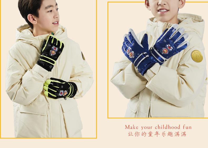 Guantes de esquí de dibujos animados para niños, guantes de cinco dedos para estudiantes de primaria, guantes gruesos a prueba de viento y cálidos, guantes cálidos a prueba de viento