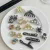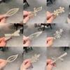 Horquilla elegante de perla para mujer, de metal negro, con clip lateral avanzado, para flequillo, con diamantes de imitación sencillos y forma de pico de pato.