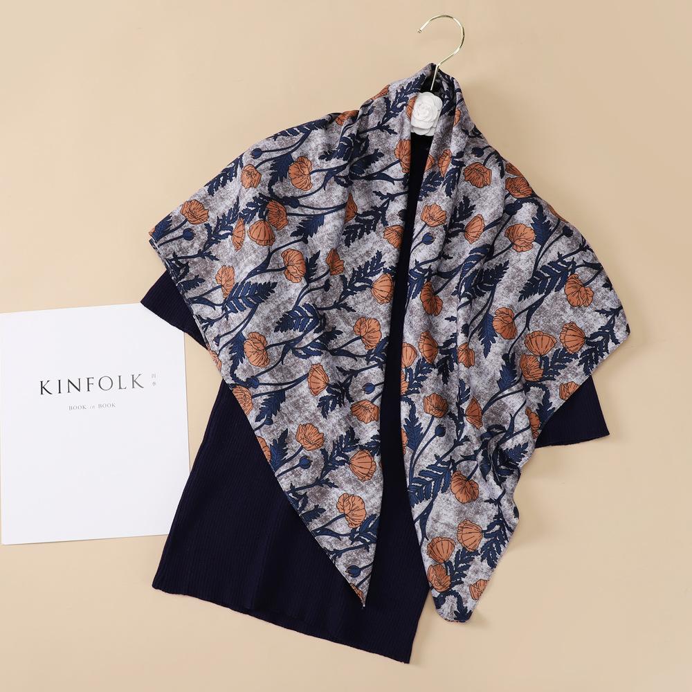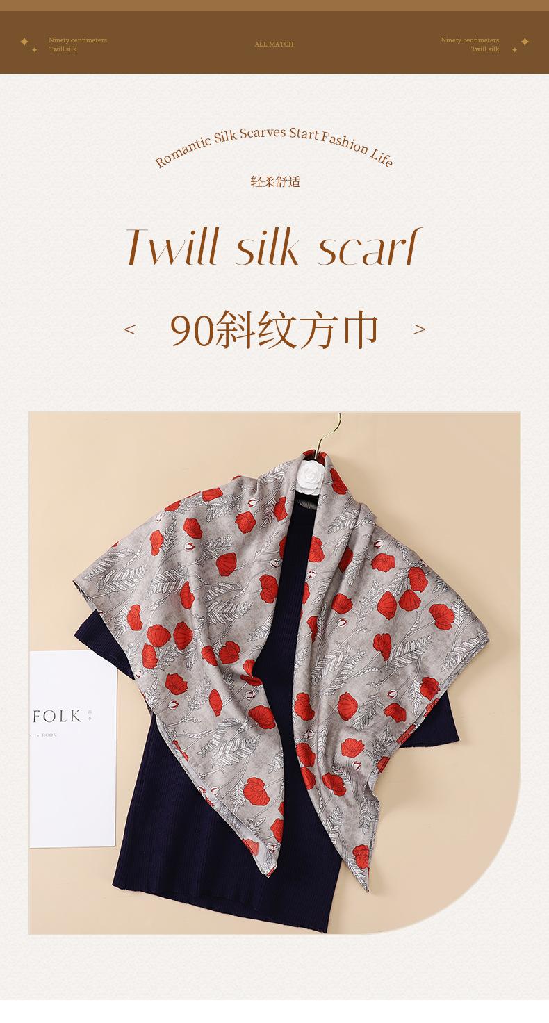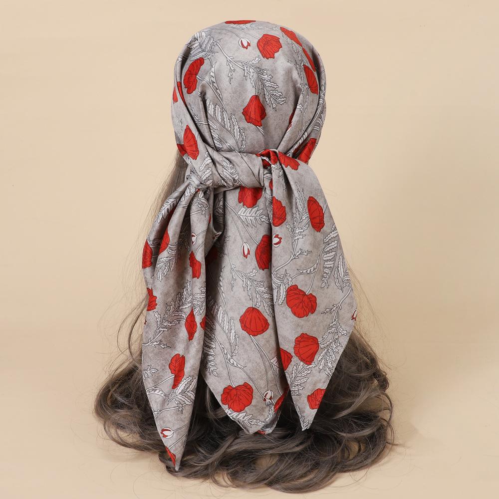 Pañuelo de Seda 90cm Pañuelo Cuadrado Grande Diseño de Flor Roja Literario Retro de Alta Gama Pañuelo Delgado para Usar como Chal Venta al por Mayor Transfronteriza