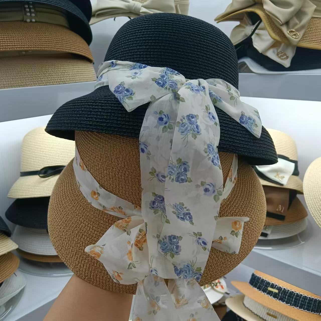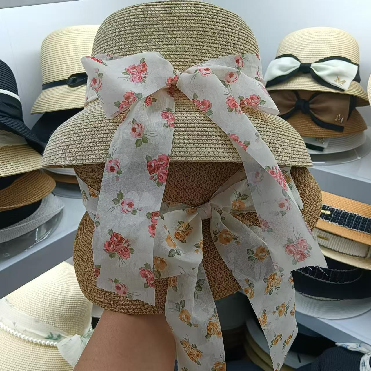 Sombrero de paja con lazo japonés para mujer, popular en Internet, ideal para todo tipo de ocasiones, ideal para playa, vacaciones y verano.