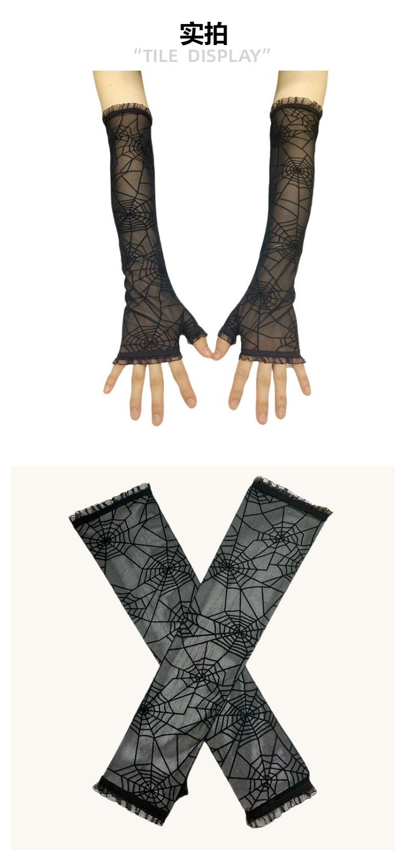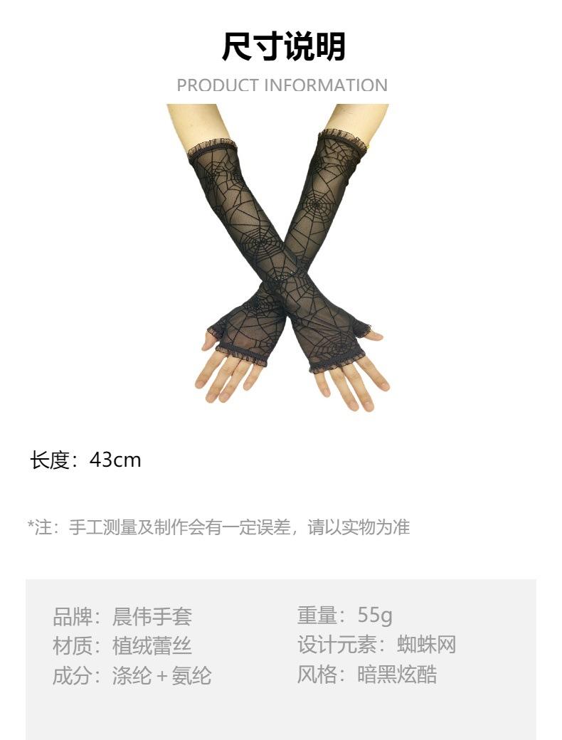 Guantes Largos sin Dedos de Terciopelo de Halloween Transfronterizo de Telaraña de Araña para Disfraz Cosplay Guantes de Baile para Fiesta Oscura