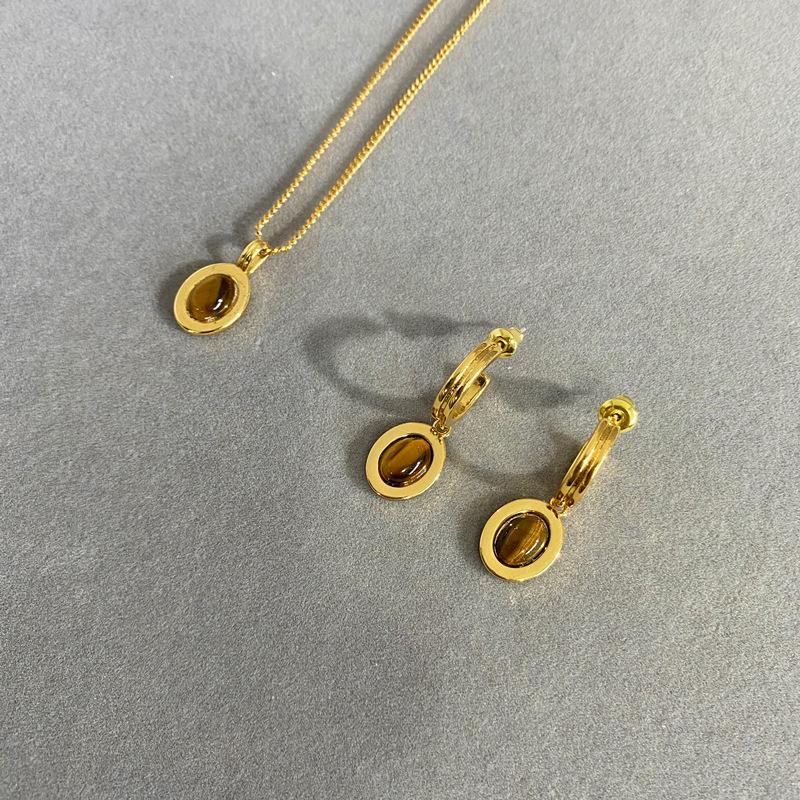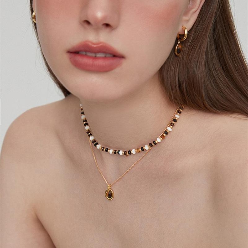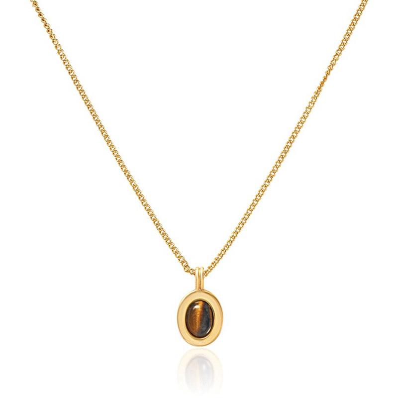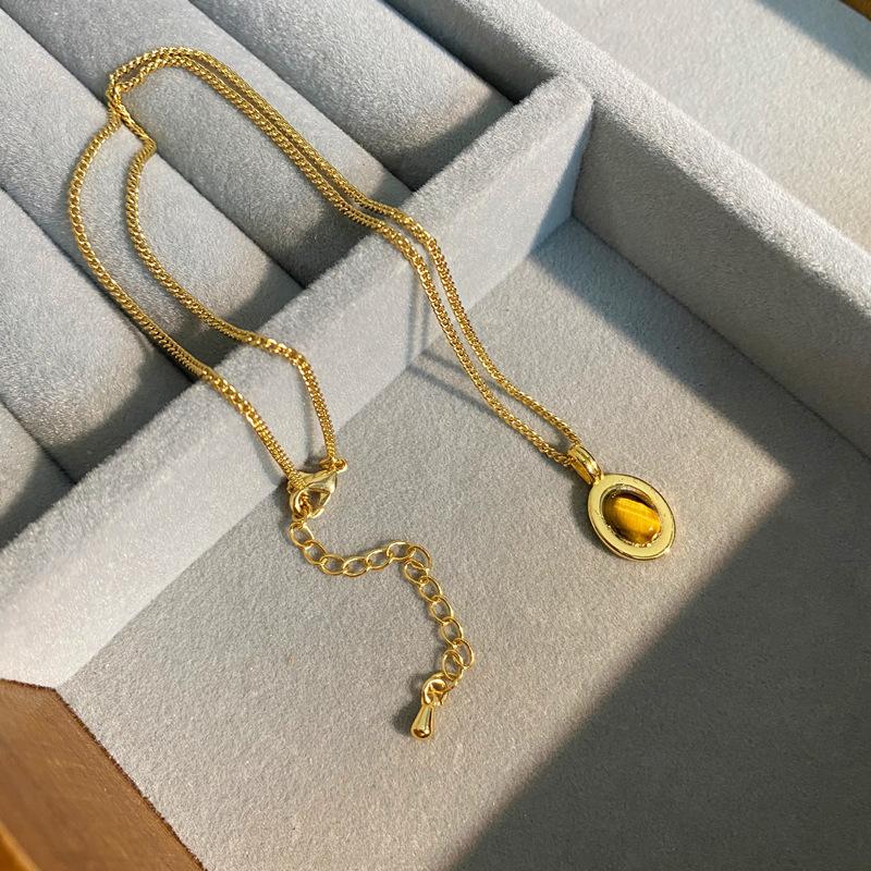 Collar largo de diseño nicho europeo y americano de piedra ojo de tigre natural, para mujer, latón chapado en oro, simple, moderno, de alta calidad, cadena para clavícula