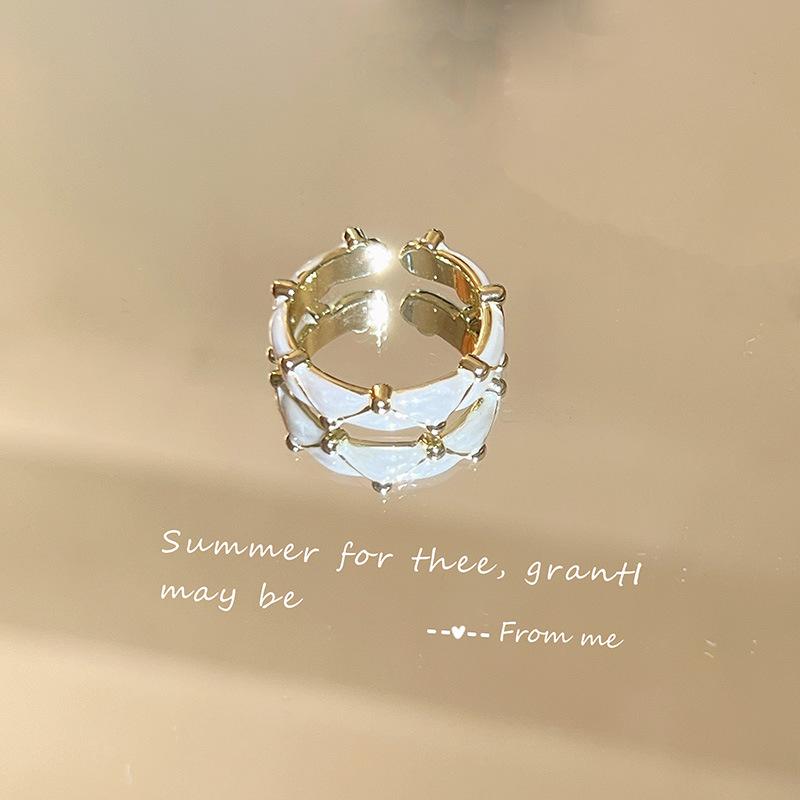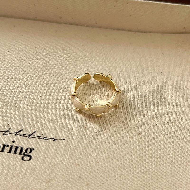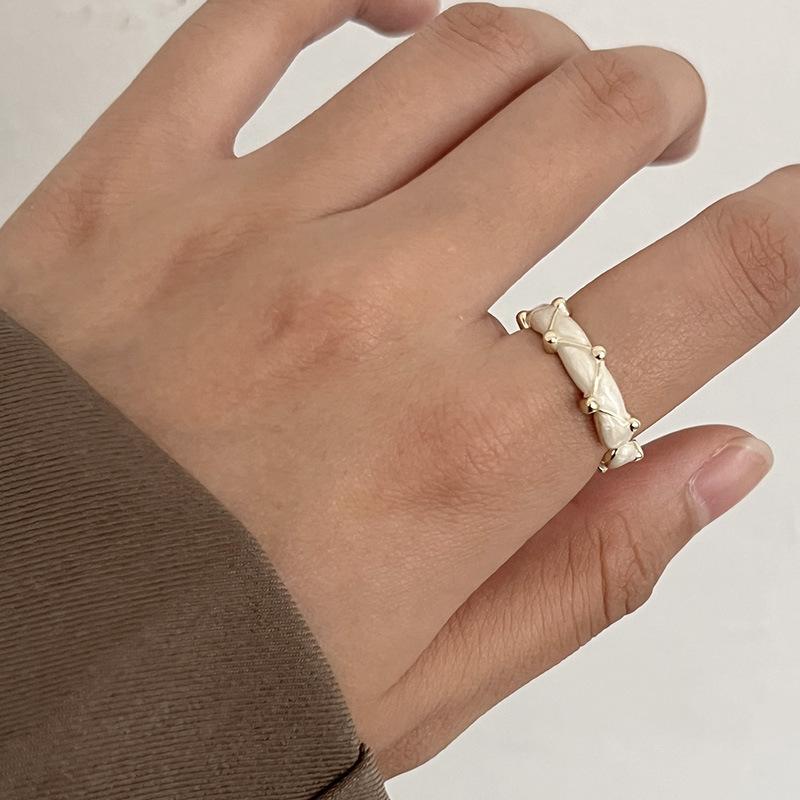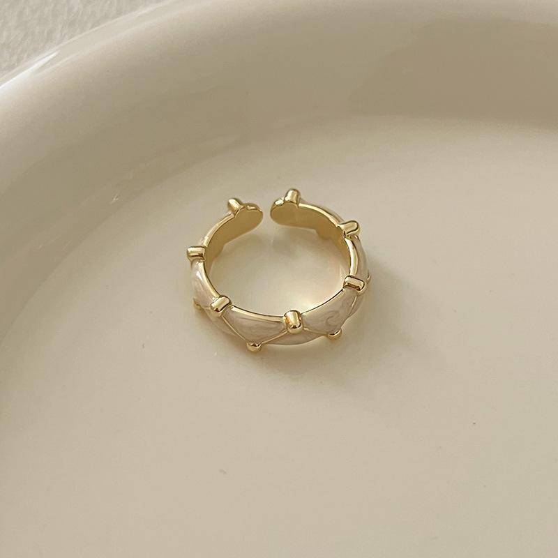 Anillo de circonita esmaltada irregular, diseño de nicho de lujo ligero, anillo de dedo elegante y sencillo para mujer.