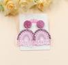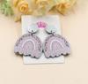 Aretes Acrílicos Transparentes Coloridos de Nube Arcoíris con Diseño de Arco de Corazón de Flor Hueca en Estilo Ins
