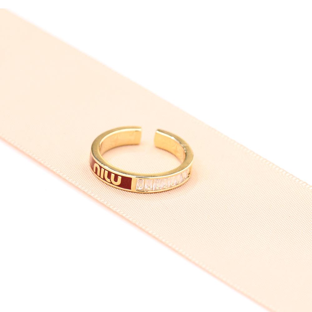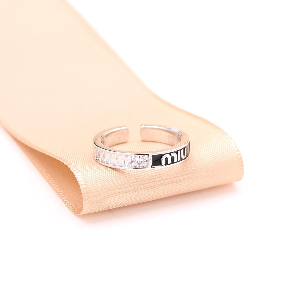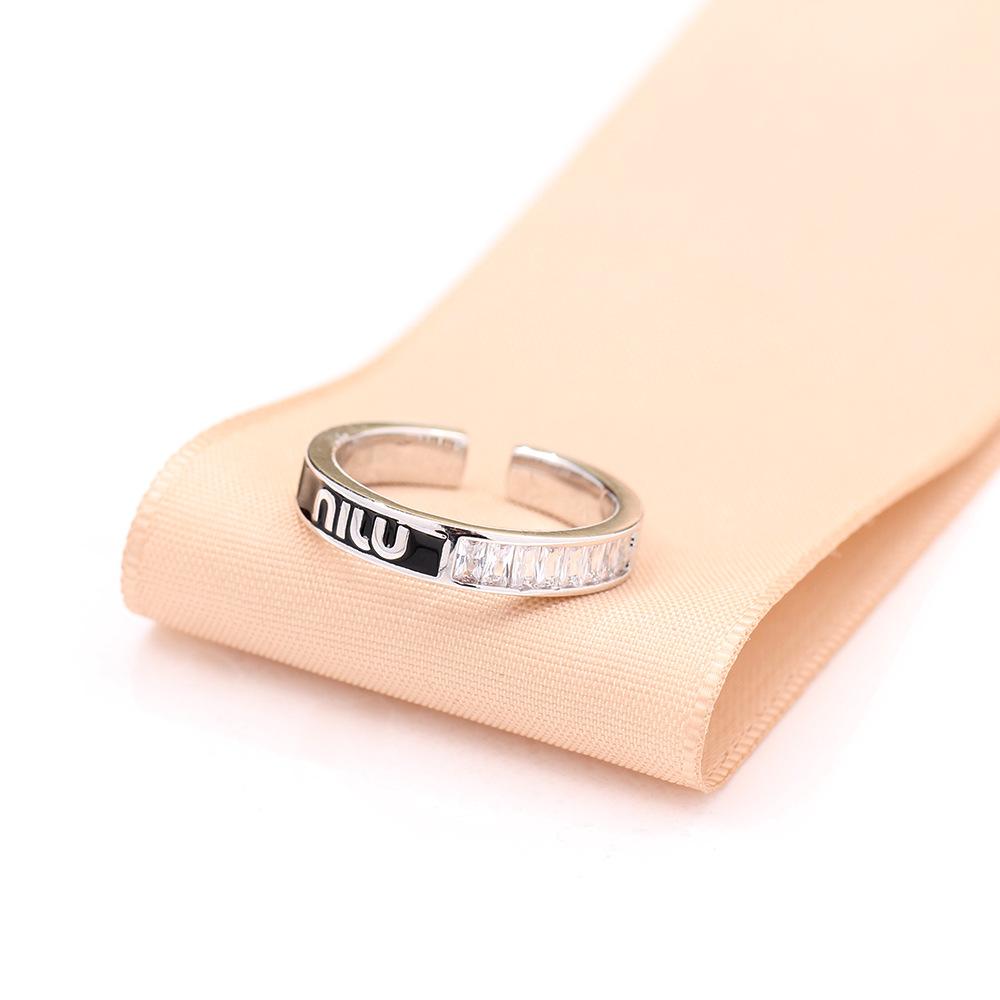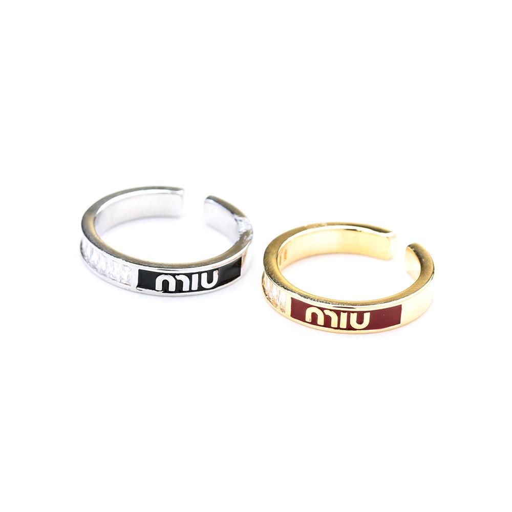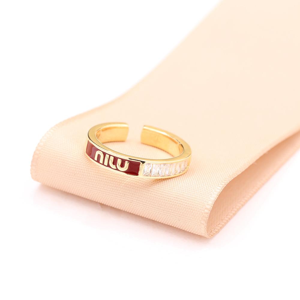 Nuevo anillo abierto simple con letra europea y americana, con incrustaciones de diamantes, gota de aceite bicolor, anillo delgado, anillo para el dedo índice, anillo para mujer