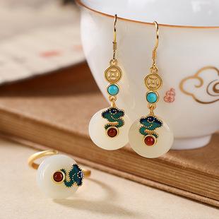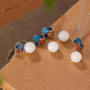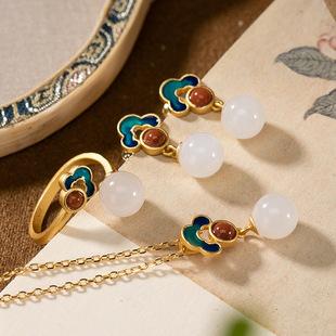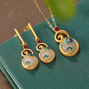| Pendientes de jade hetiano Yiluyin S925 de plata esterlina con baño de oro cloisonné estilo chino Ruyi conjunto de anillo colgante para damas | ¥35.00 | hacer un trato10Bolígrafo |