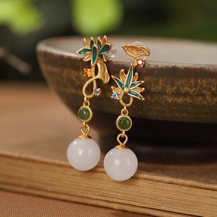 | |  | Pendientes Yiluyin S925 de plata esterlina chapados en oro cloisonné y jaspe de jade blanco Tian, pendientes de loto de temperamento retro para mujer | ¥78.00 | hacer un trato61Bolígrafo |