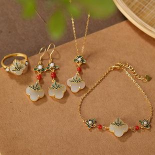 | Anillo, pendientes y pulsera con colgante de estilo chino Yiluyin S925 de plata esterlina chapada en oro cloisonné y jade hetiano para mujer | ¥50.00 | hacer un trato1904Bolígrafo |