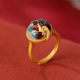 | Anillo Yiluyin S925 de plata esterlina bañado en oro con cloisonné azul tostado y jade hetiano, estilo retro nacional, con personalidad de pavo real para mujer. | ¥73.00 | hacer un trato6Bolígrafo |