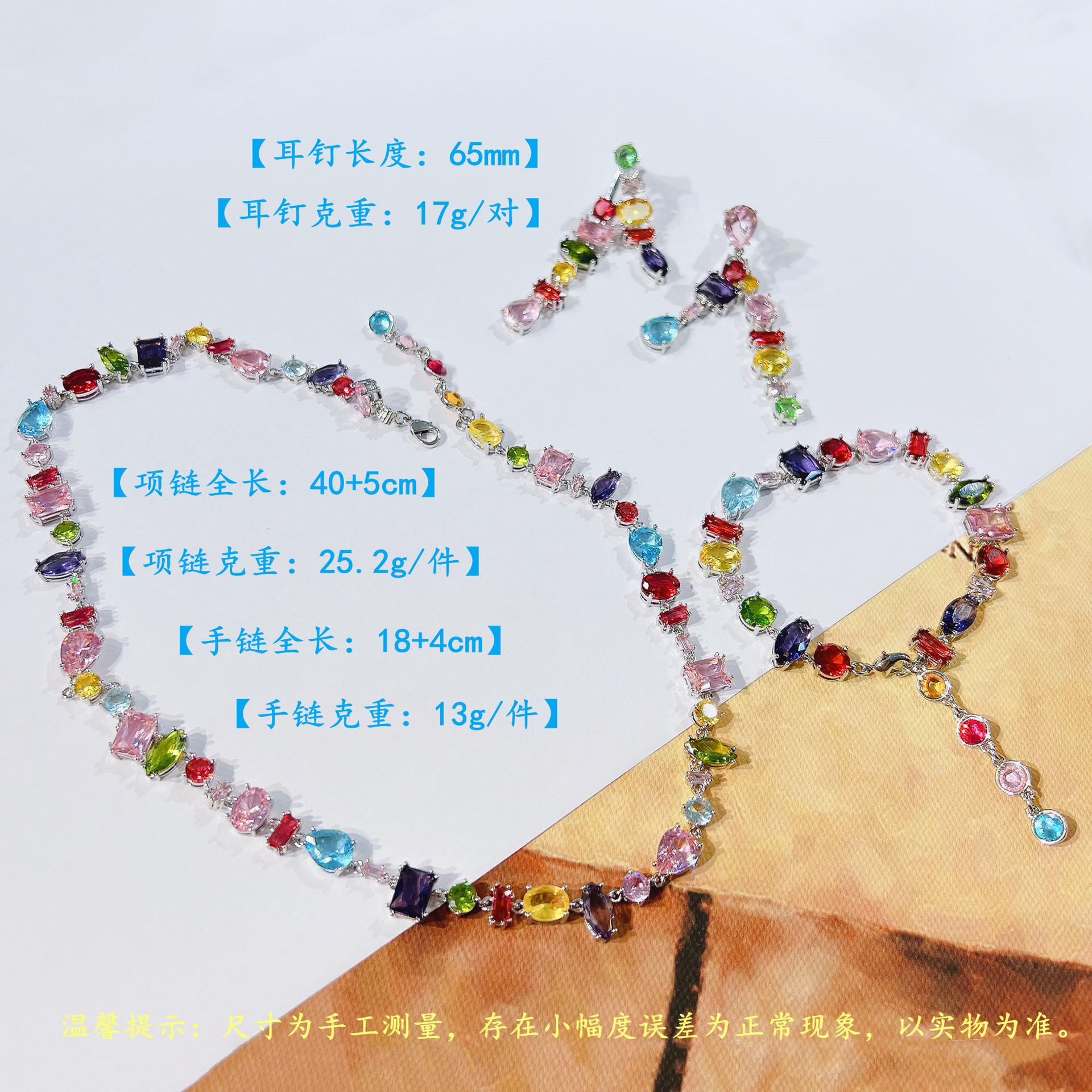 Color diamond necklace "40+5cm], Color diamond bracelet [18+4cm]], Colored Diamond Stud Earrings [One Pair]]