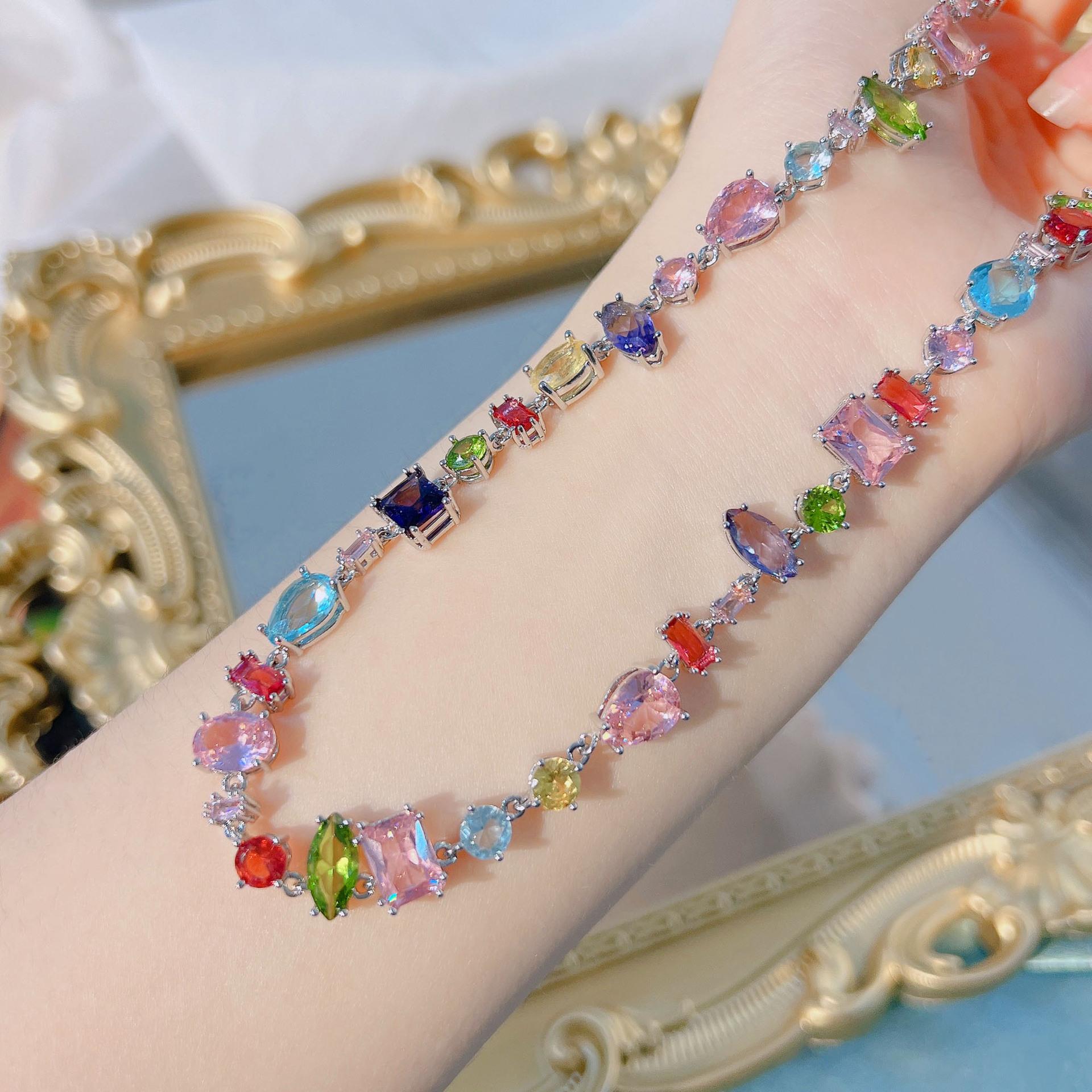 Pulsera Dopamina Bloque Color Caramelo Cristal Gema Diseño Nicho Femenino Collar Arcoíris Aretes Colgantes Traseros