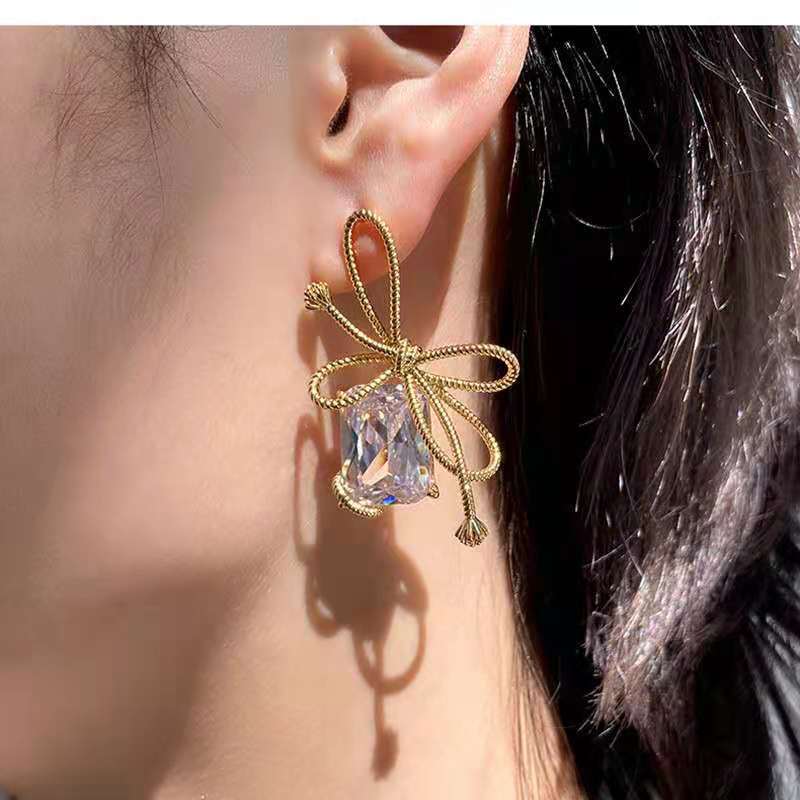 Pendientes de botón con lazo y nudo de circonita grande con diseño de nicho de estilo coreano 2021, pendientes de moda de verano que combinan con todo, moda femenina