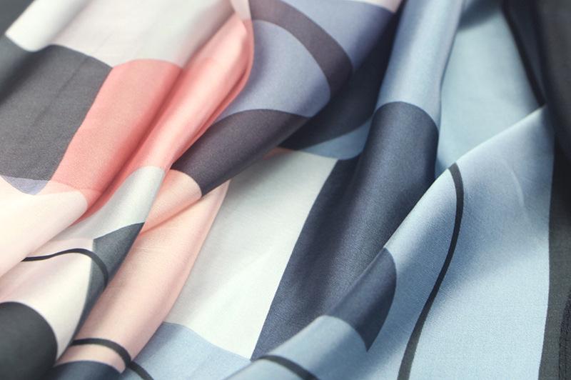 Bufanda de seda de imitación de moda europea y americana, bufanda de seda con estampado geométrico, chal suave para vacaciones, protector solar para mujer, venta al por mayor