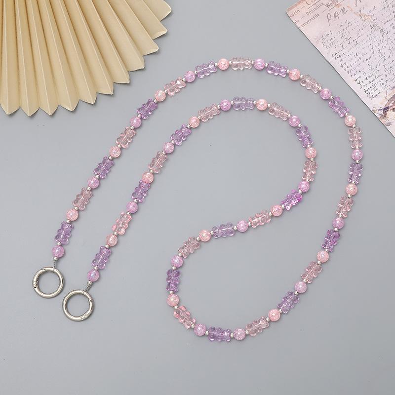 Cordón para el cuello para teléfono móvil con cuentas acrílicas de color caramelo transfronterizo, cadena para teléfono móvil de celebridades, accesorios para fundas de teléfono móvil con cadena cruzada para mujer