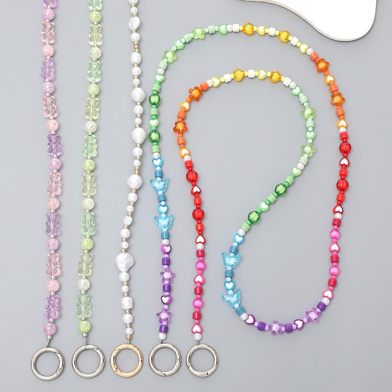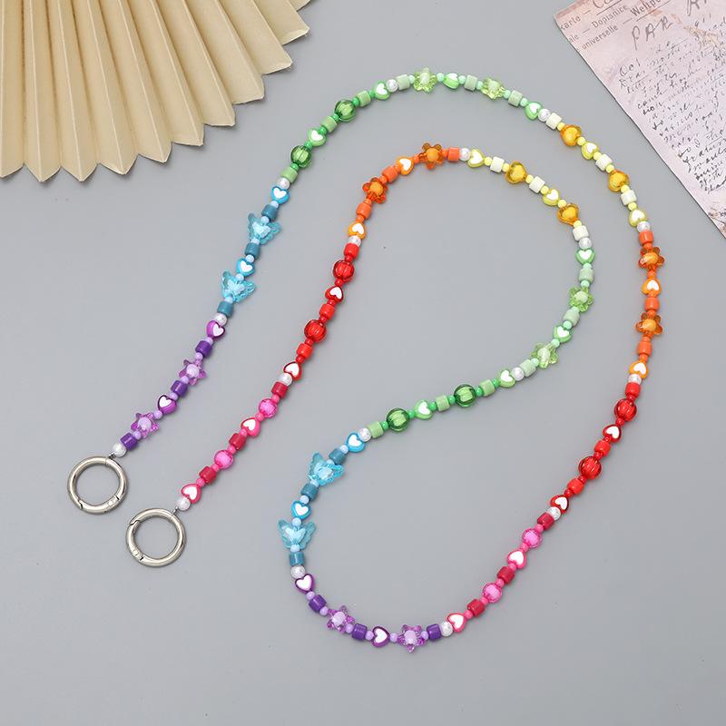 Cadena cruzada con cuentas de colores mixtos de Yilian, nueva cadena para teléfono móvil con cuentas acrílicas pintadas a mano, cordón colgante para funda de teléfono móvil