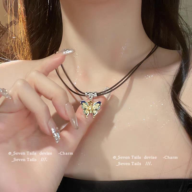 Nuevo collar de mariposa pintada vintage de estilo chino. Nuevo diseño de moda. Cadena de clavícula que combina con todo.