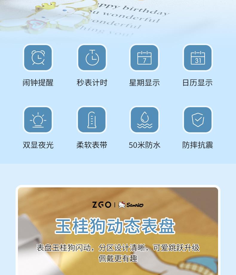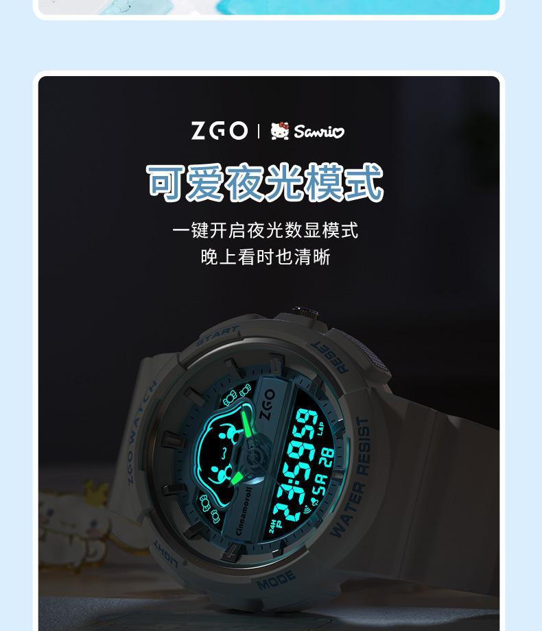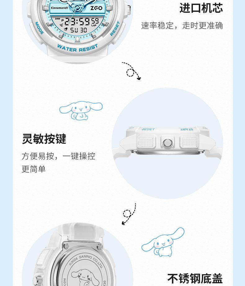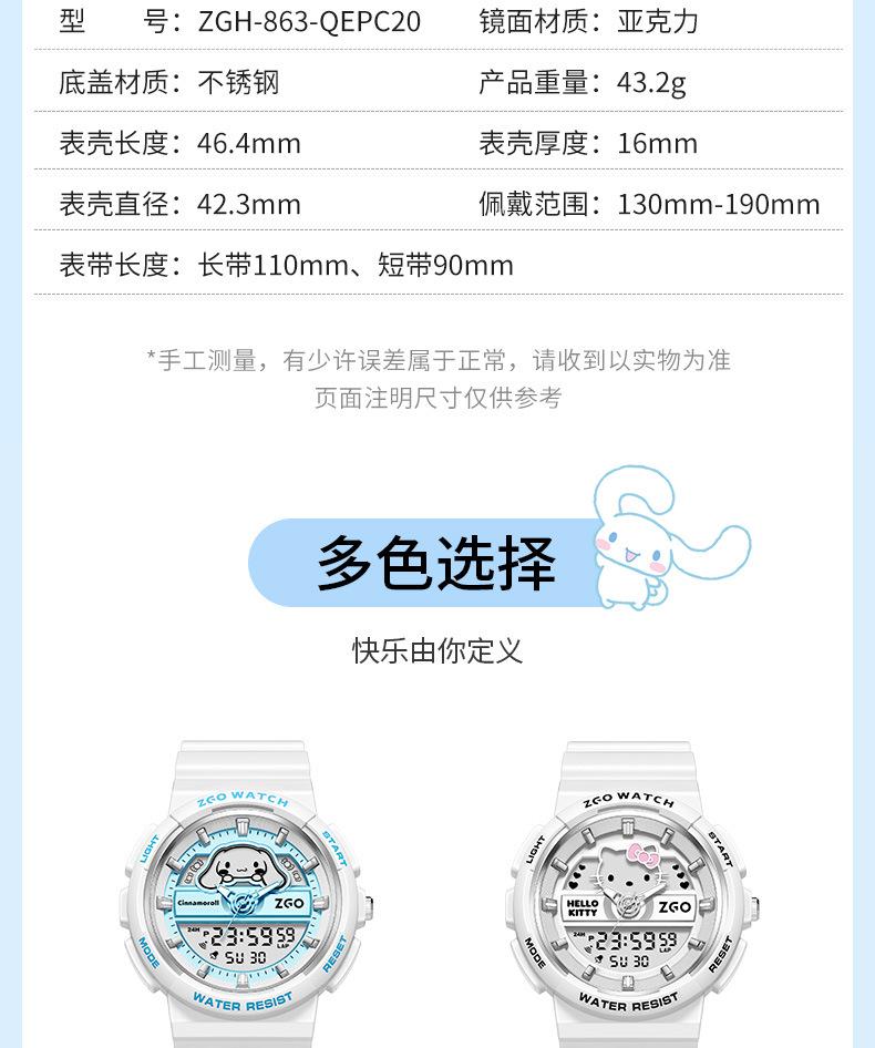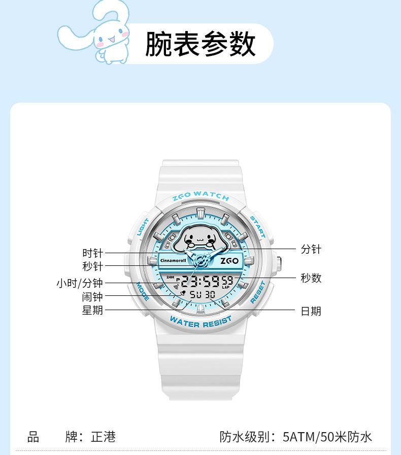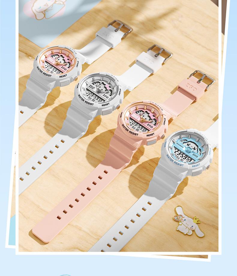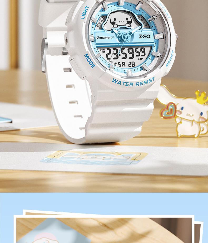Zgo Reloj de Estudiante Sanrio para Mujer de Secundaria y Preparatoria Reloj de Cinnamon Dog Deportivo Impermeable Multifunción Digital