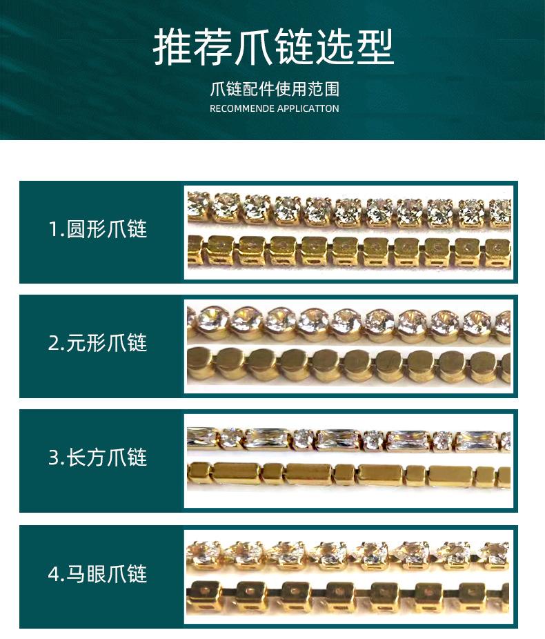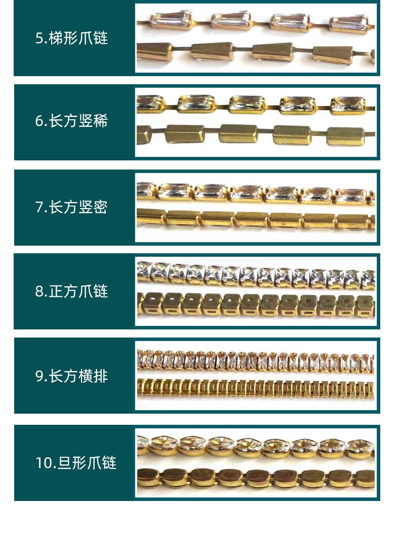 Tipo yuan, hecho en fábrica, chapado en oro de 24k imitación forma yuan cadena de garra de pedrería, soldadura cadena de pedrería plateada mayorista
