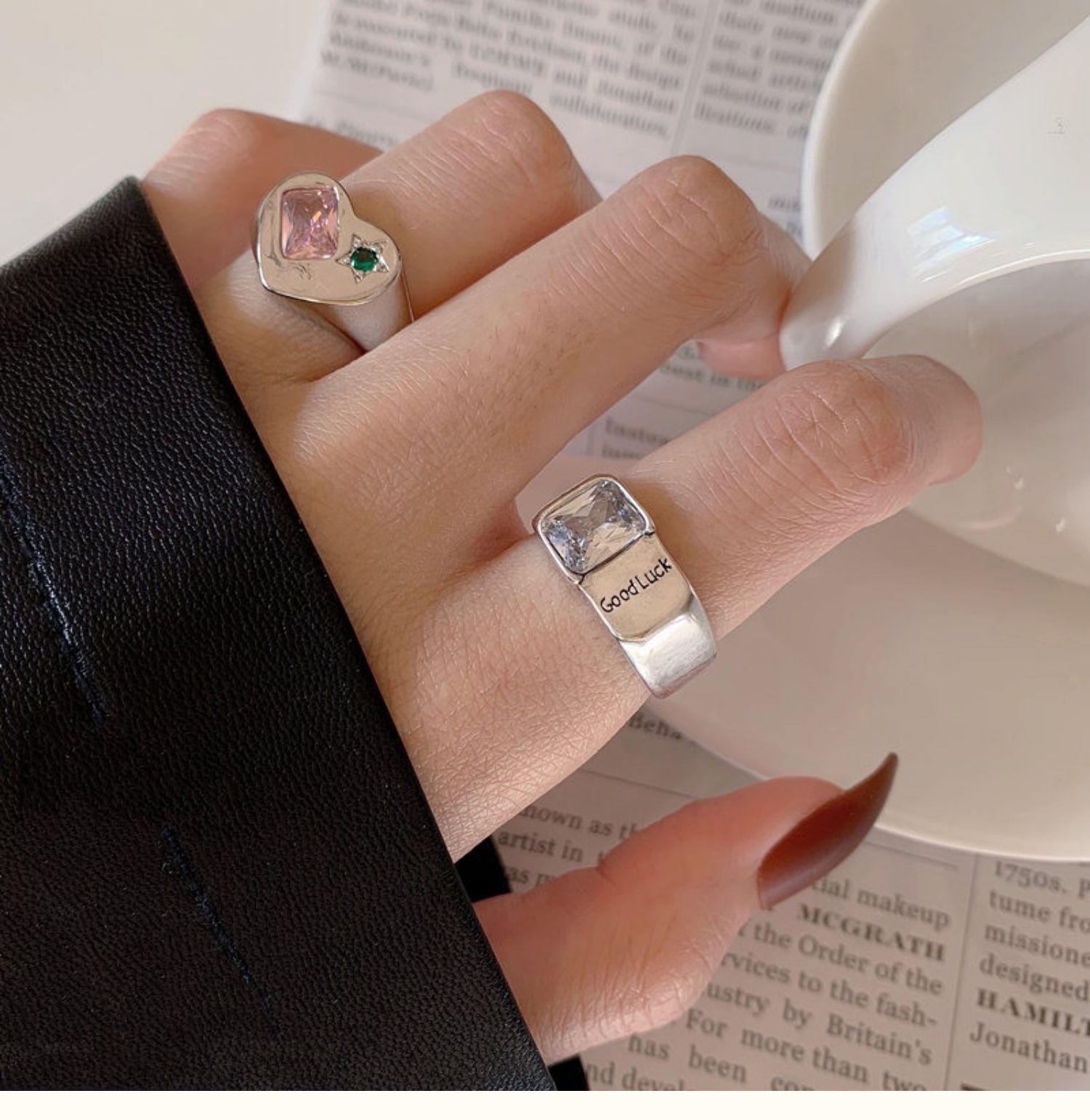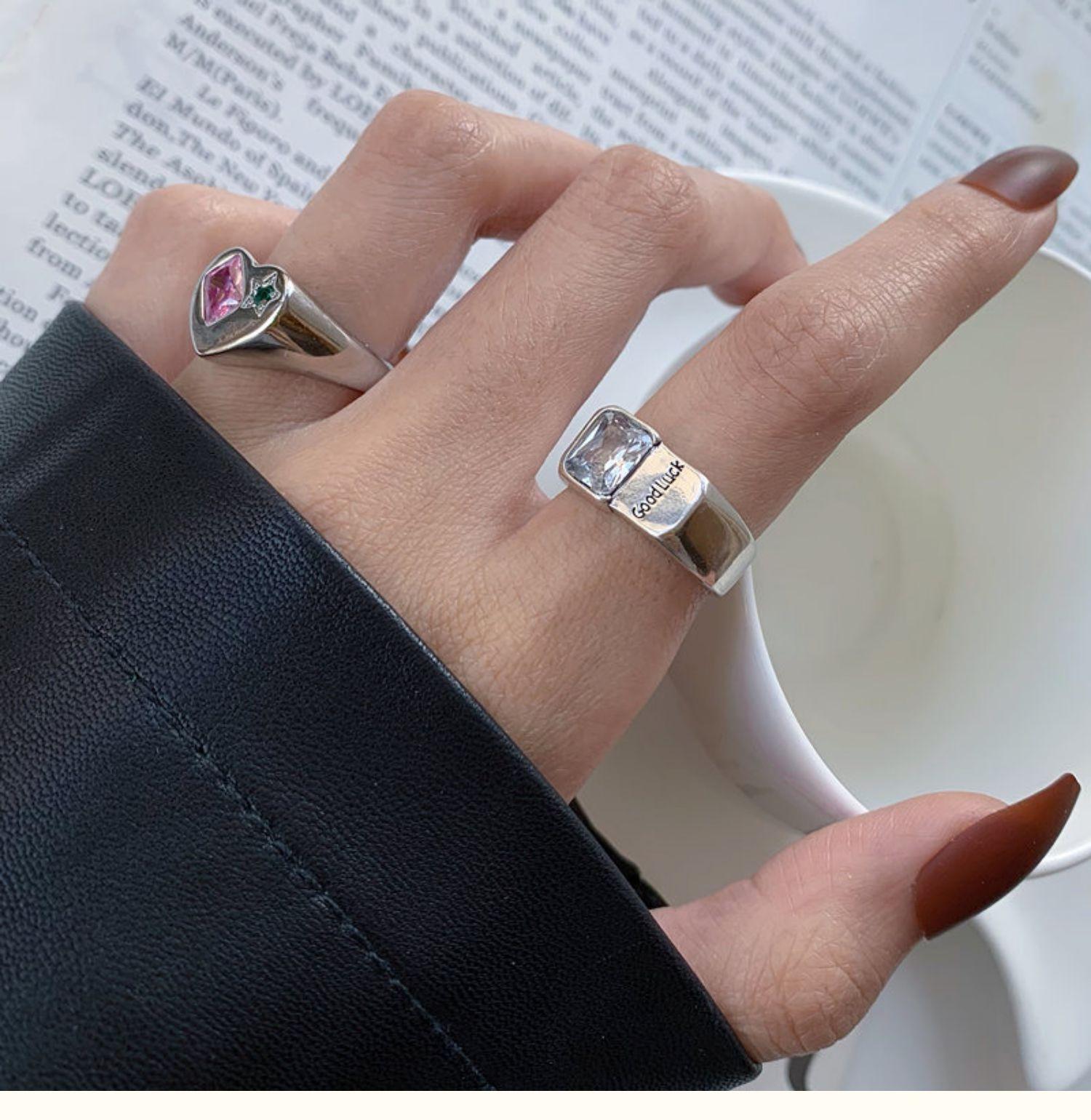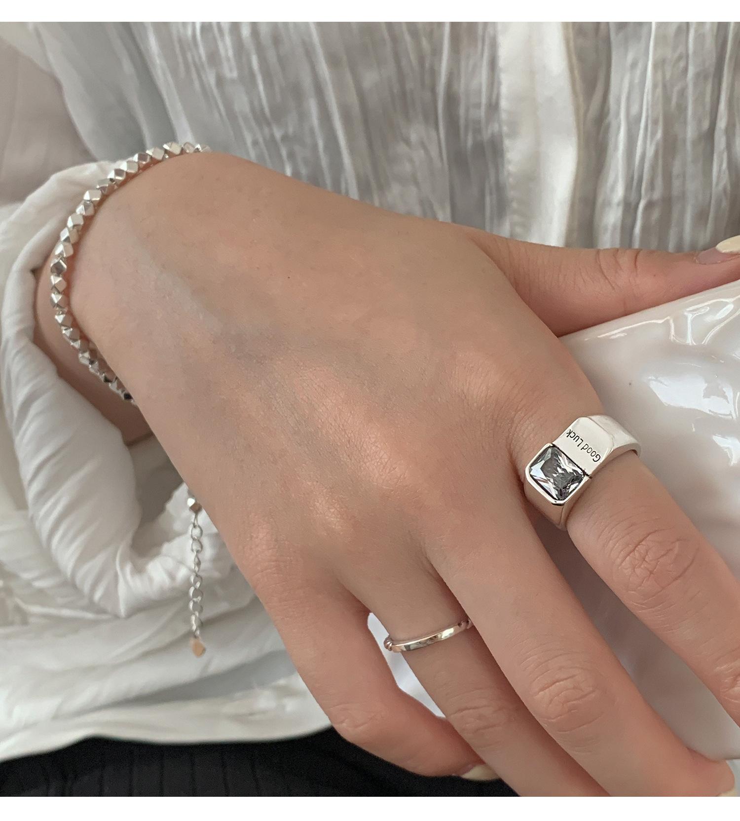 Buena Suerte Constante buena suerte Anillo Moda Femenina Estilo Frío Elegante Plata S925 Zircón Amor Anillo de Dedo