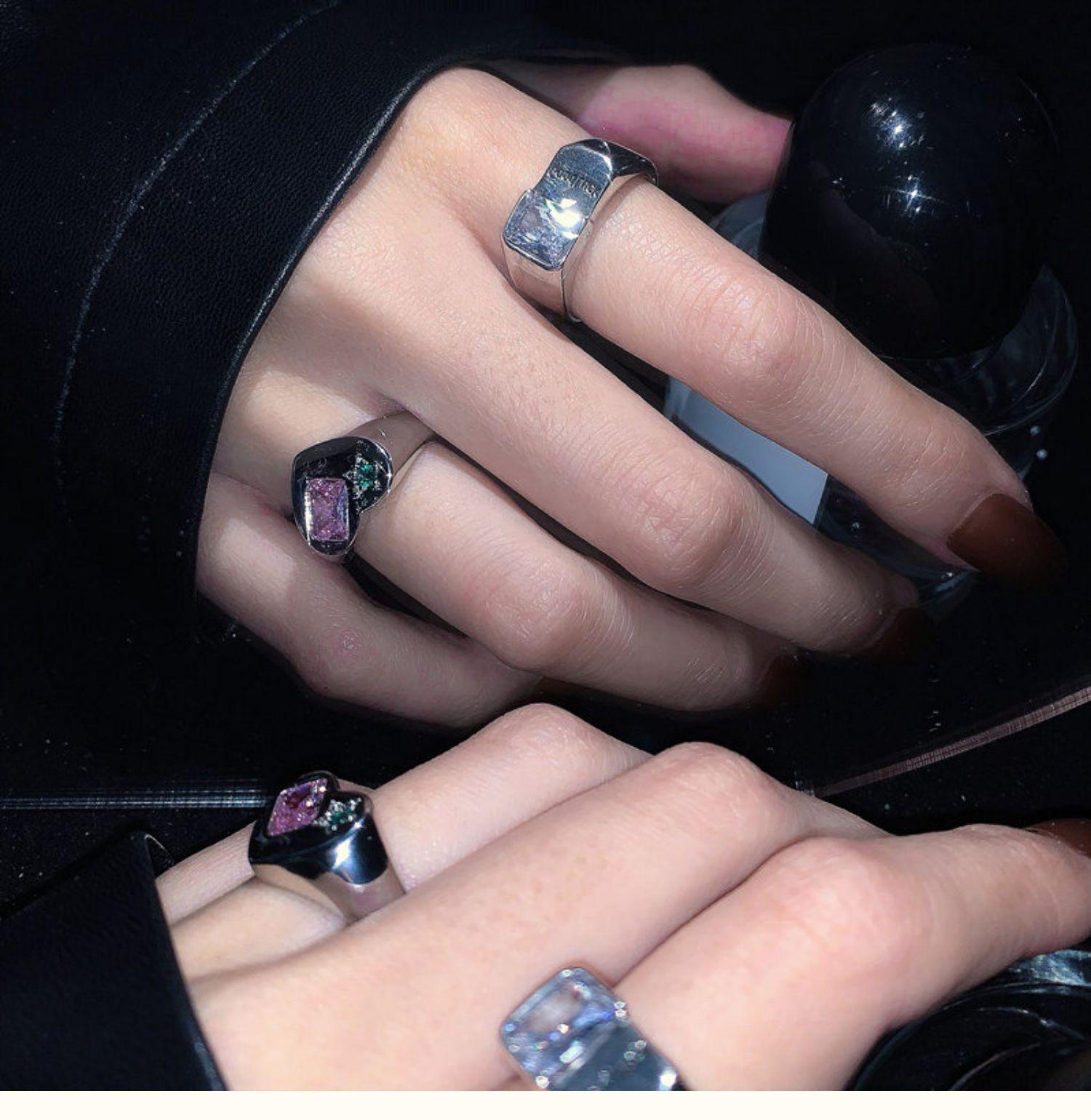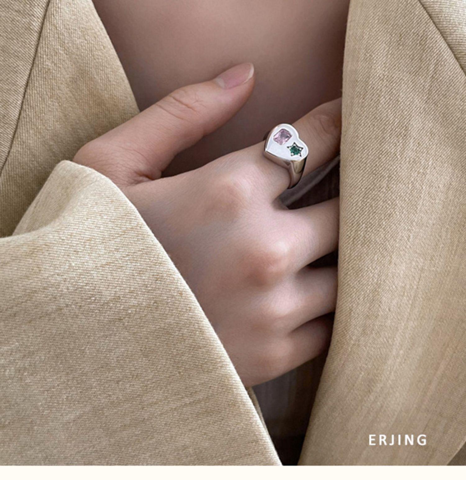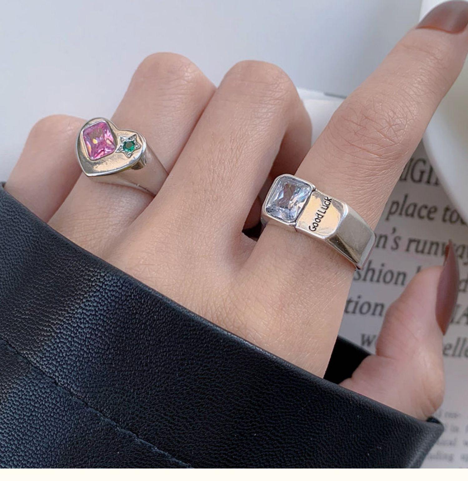 Buena Suerte Constante buena suerte Anillo Moda Femenina Estilo Frío Elegante Plata S925 Zircón Amor Anillo de Dedo