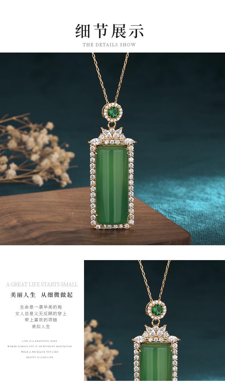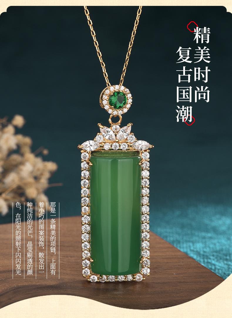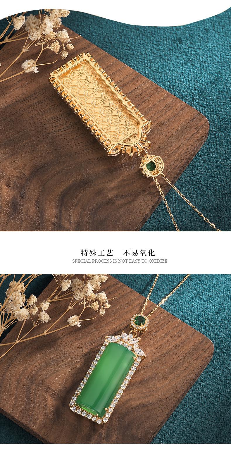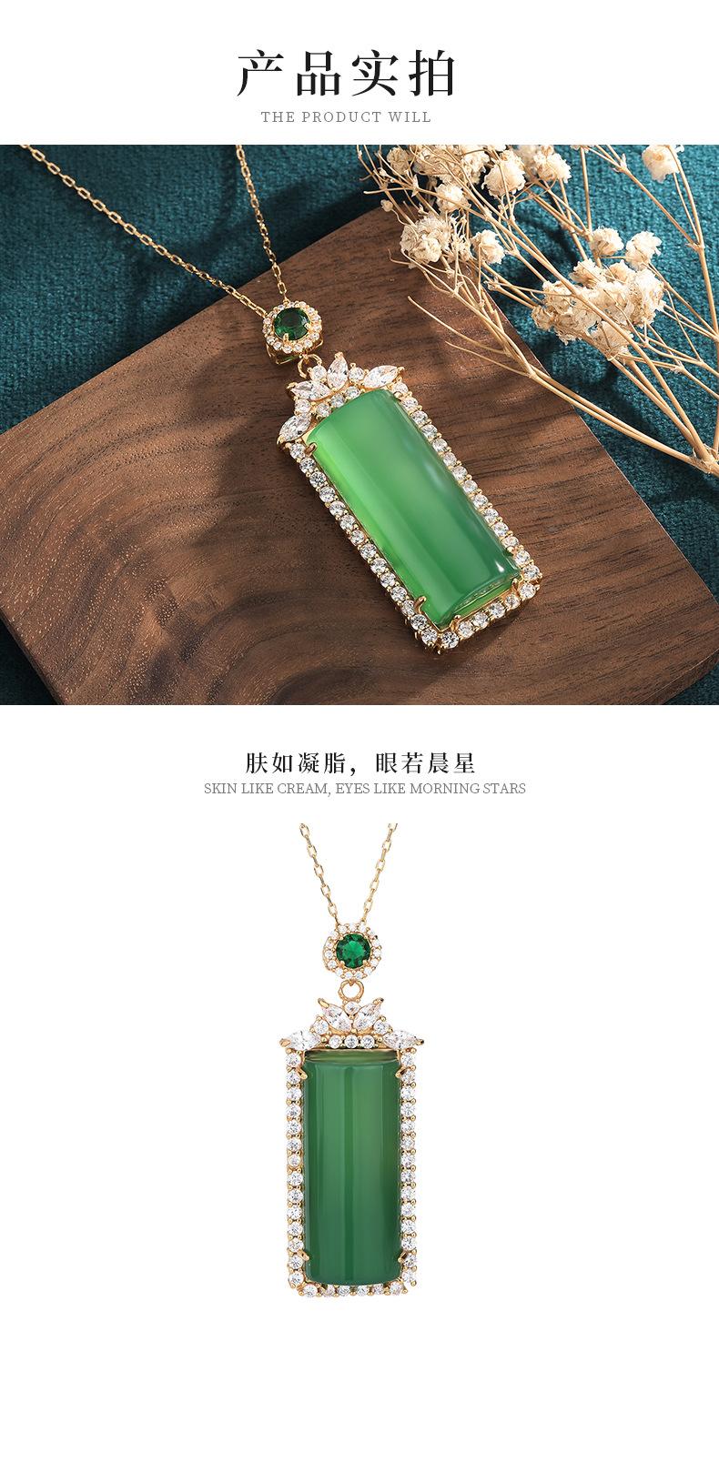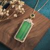 Colgante cuadrado de calcedonia verde hielo de alta calidad, colgante de ágata con tarjeta indiferente de color esmeralda, collar para hombres y mujeres.